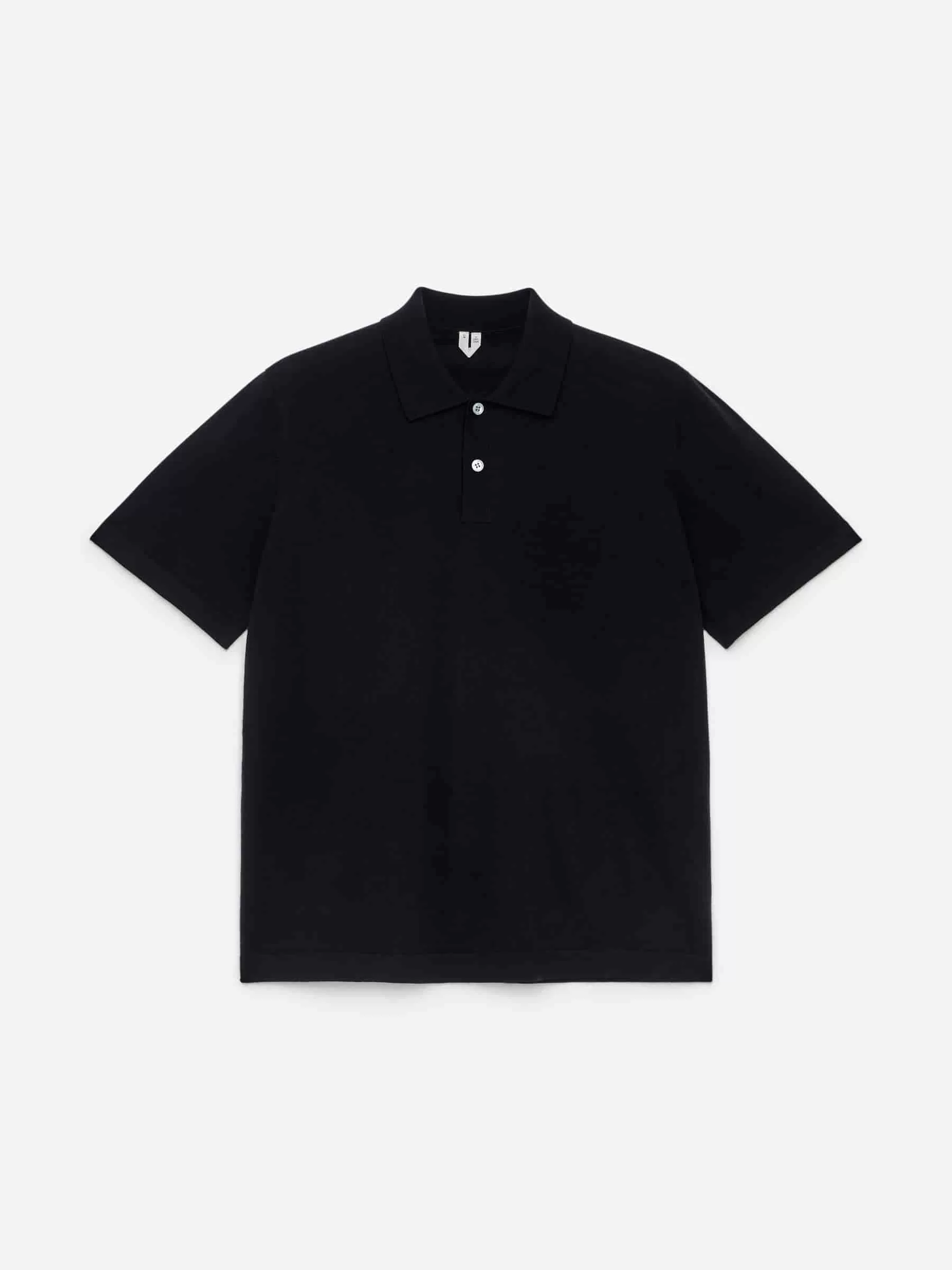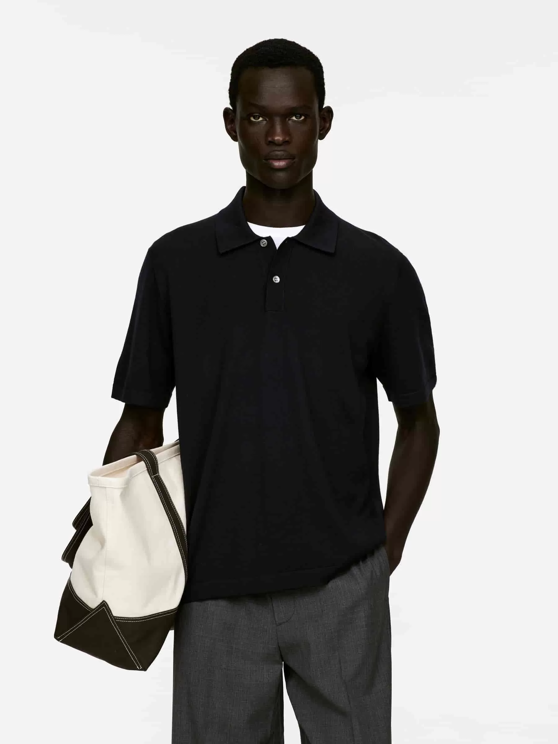 Feinstrick-Poloshirt aus Wolle. Ein Kurzarmmodell mit einem Kragen aus Voll-Milano-Strick und einer Knopfleiste mit zwei Knöpfen. Das Produkt enthält 100 % RWS-Wolle (TE-00047206). Produkte, die nach dem Responsible Wool Standard (RWS) zertifiziert sind, enthalten Wollfasern von Farmen, die unabhängig nach Tierschutz- und Landbewirtschaftungsanforderungen zertifiziert sind.