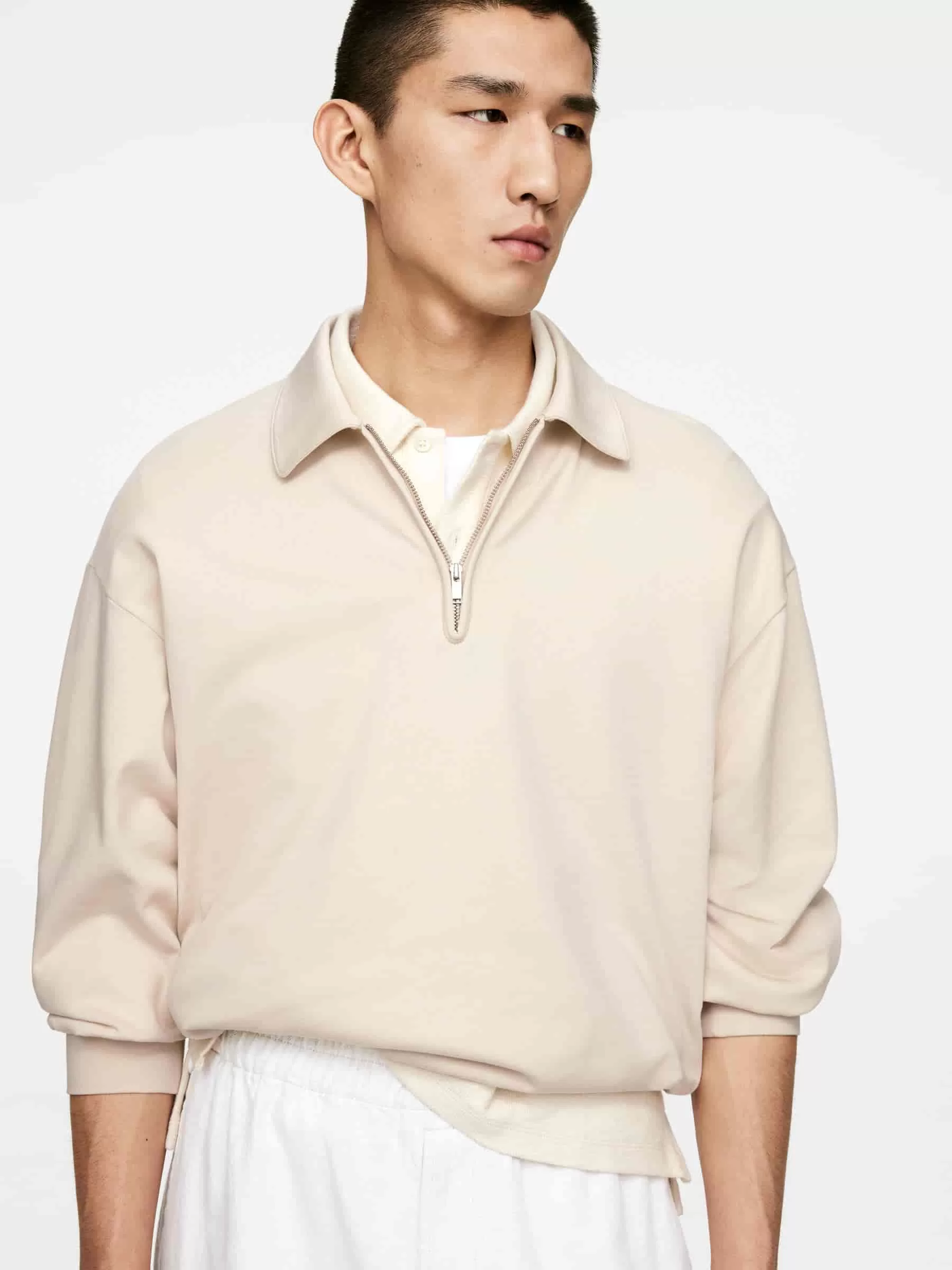 ARKE Herren Poloshirt mit halbem Reißverschluss Beige