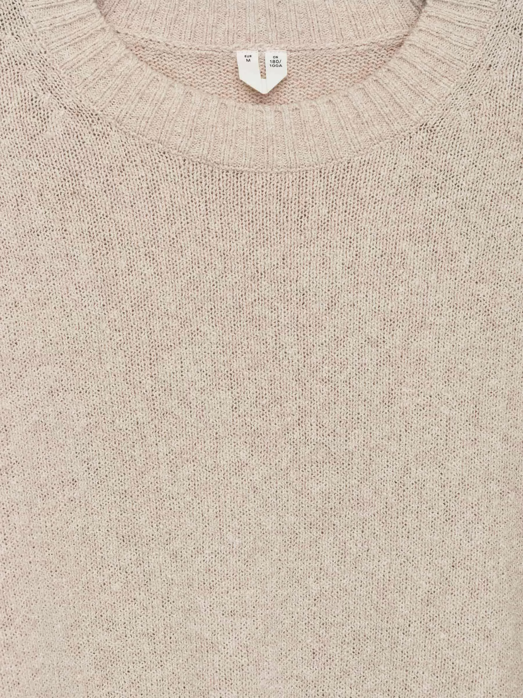 Pullover mit Rundhalsausschnitt, leicht überschnittenen Schultern und gerippten Kanten an Bündchen, Hals und Saum. Hergestellt aus einer luxuriösen Mischung aus Baumwolle, Polyester, Leinen und Maulbeerseide.