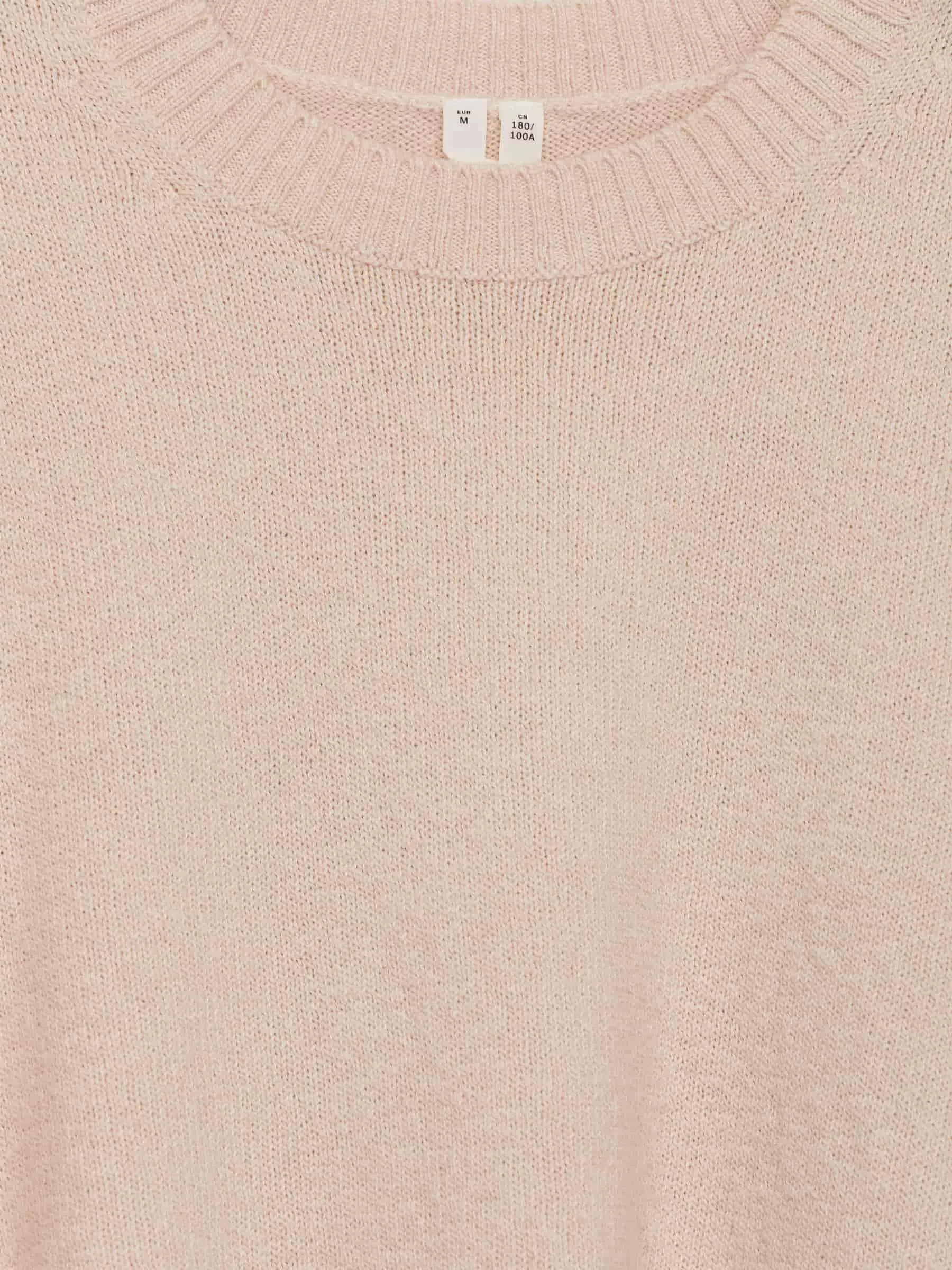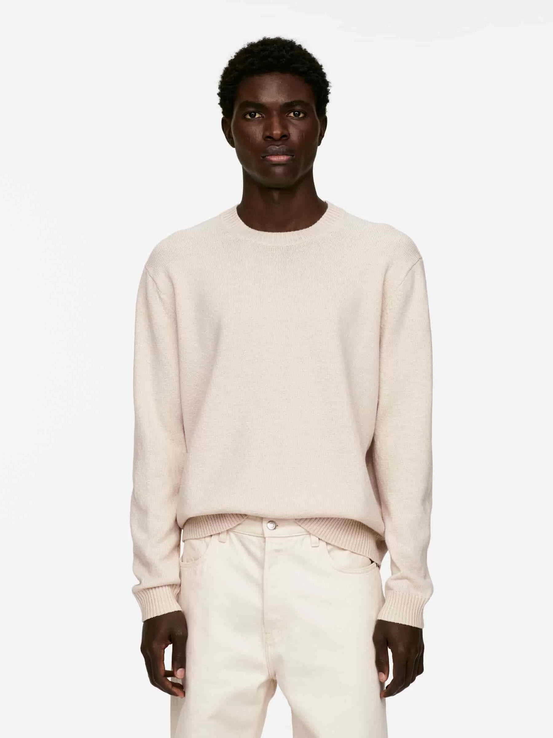 Pullover mit Rundhalsausschnitt, glatt gestrickt aus einem Woll-Baumwoll-Garn mit leicht unregelmäßiger Textur. Gerippte Abschlüsse. Normale Passform. Der Stil enthält 60 % RWS-Wolle (TE-00047206). Produkte, die nach dem Responsible Wool Standard (RWS) zertifiziert sind, enthalten Wollfasern von Farmen, die unabhängig nach Tierschutz- und Landbewirtschaftungsanforderungen zertifiziert sind.