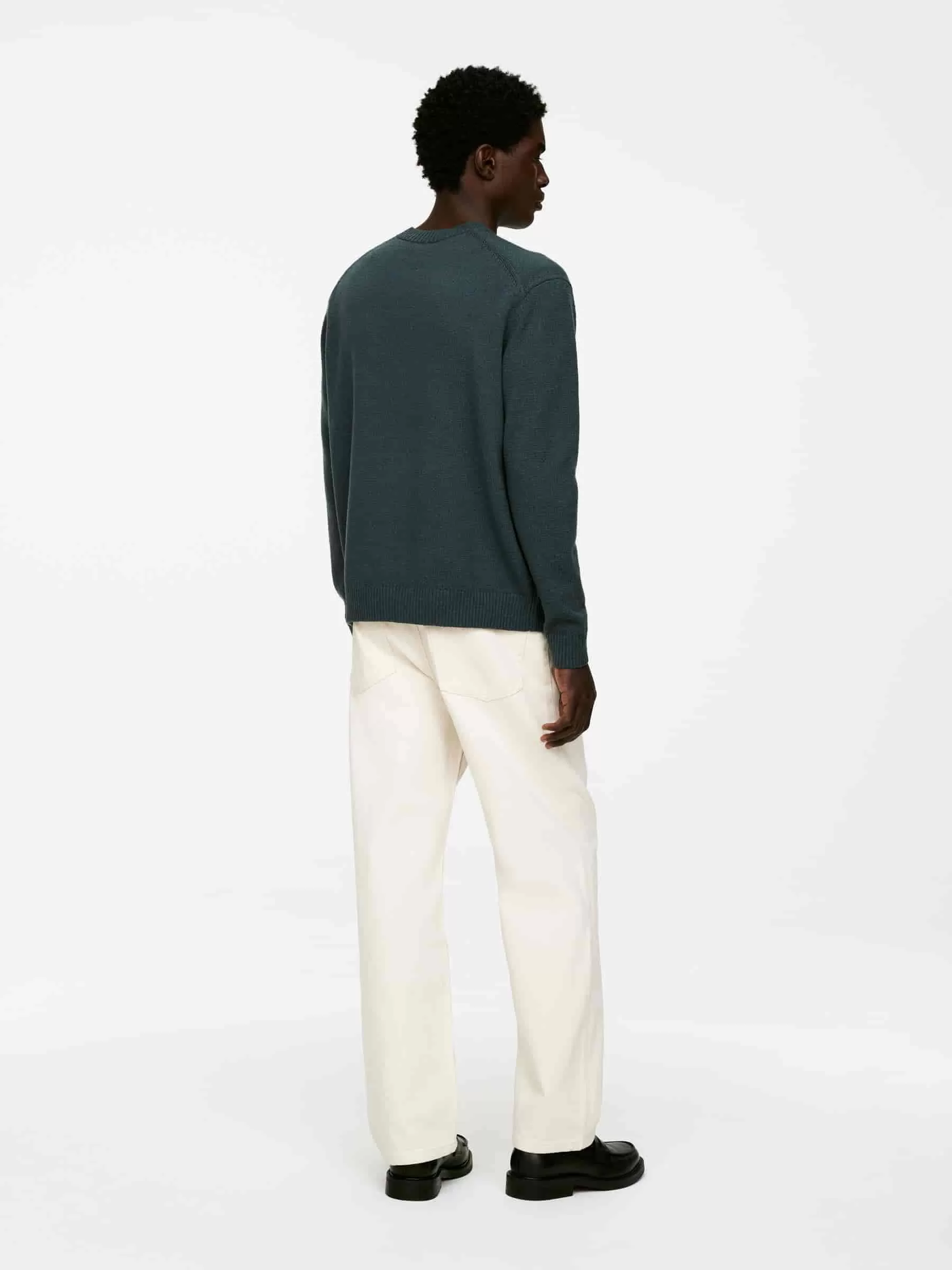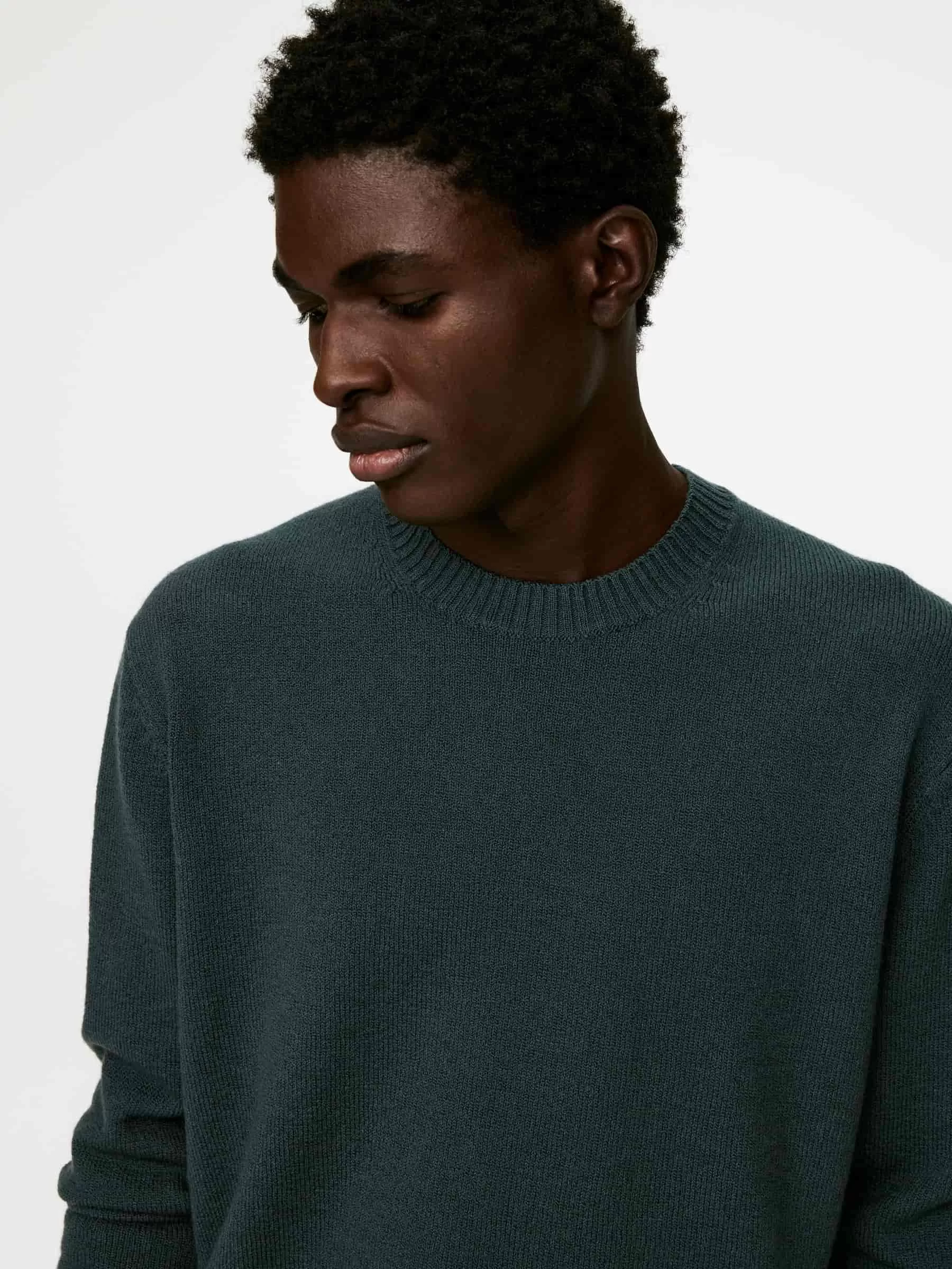 Pullover mit Rundhalsausschnitt, glatt gestrickt aus einem Woll-Baumwoll-Garn mit leicht unregelmäßiger Textur. Gerippte Abschlüsse. Normale Passform. Der Stil enthält 60 % RWS-Wolle (TE-00047206). Produkte, die nach dem Responsible Wool Standard (RWS) zertifiziert sind, enthalten Wollfasern von Farmen, die unabhängig nach Tierschutz- und Landbewirtschaftungsanforderungen zertifiziert sind.