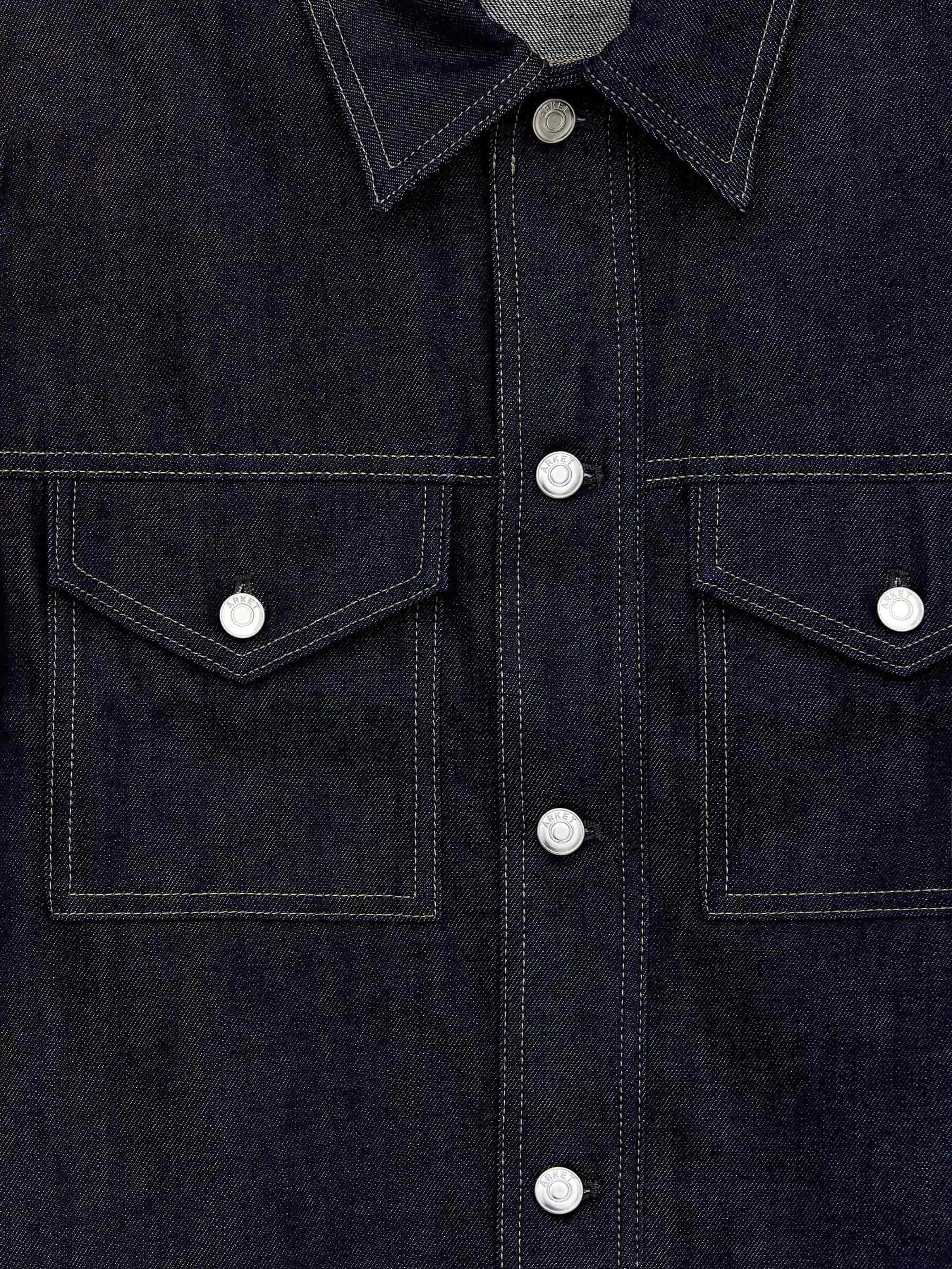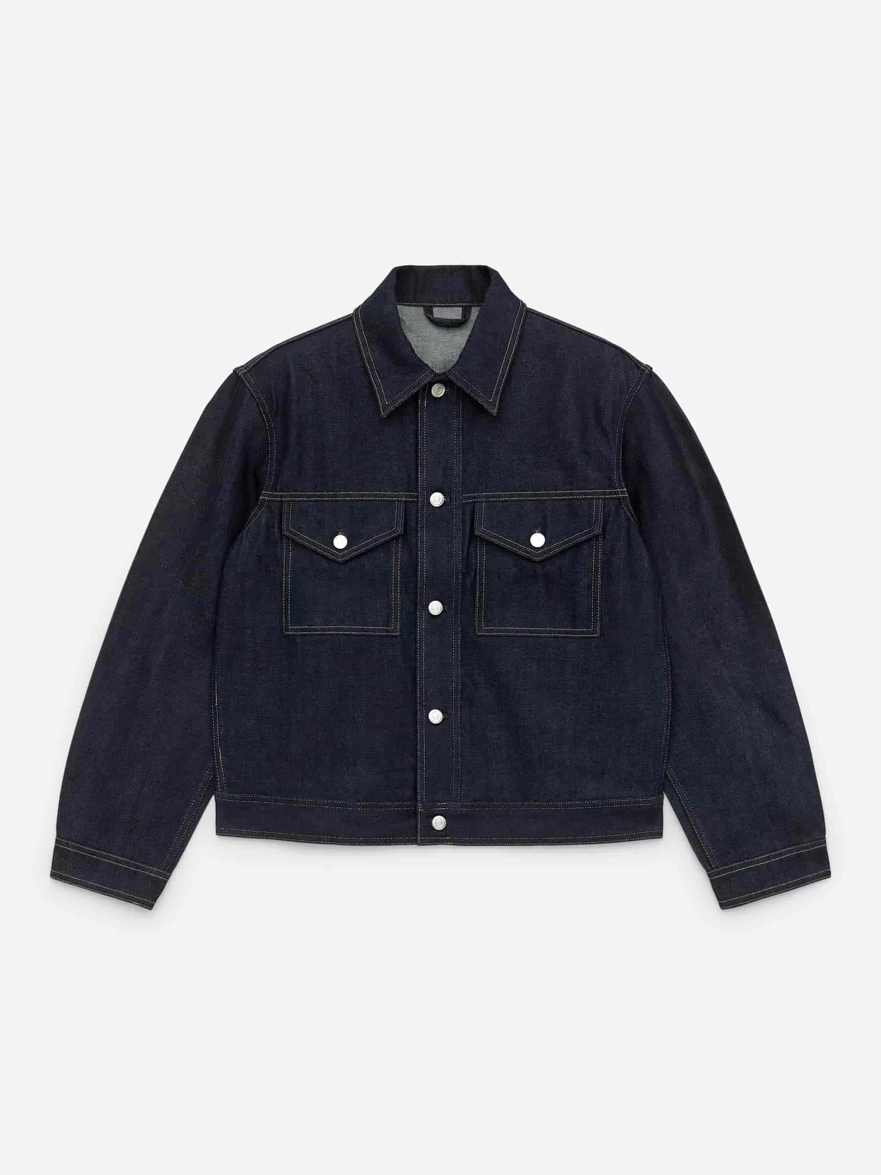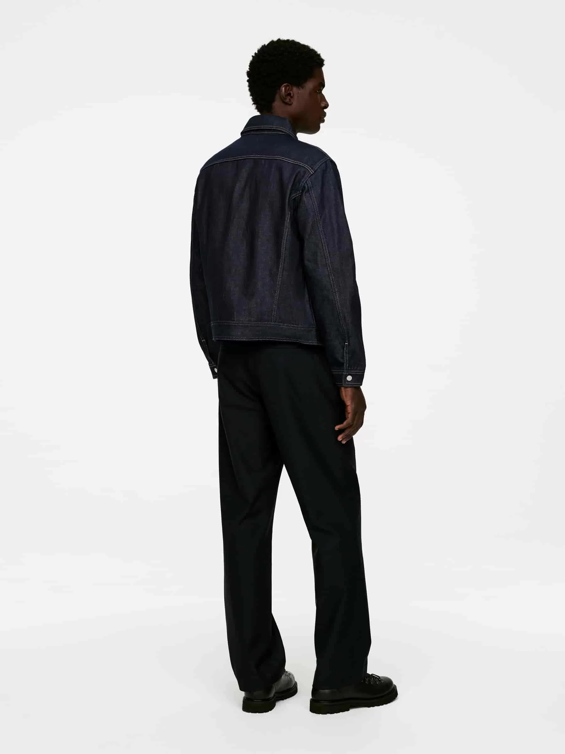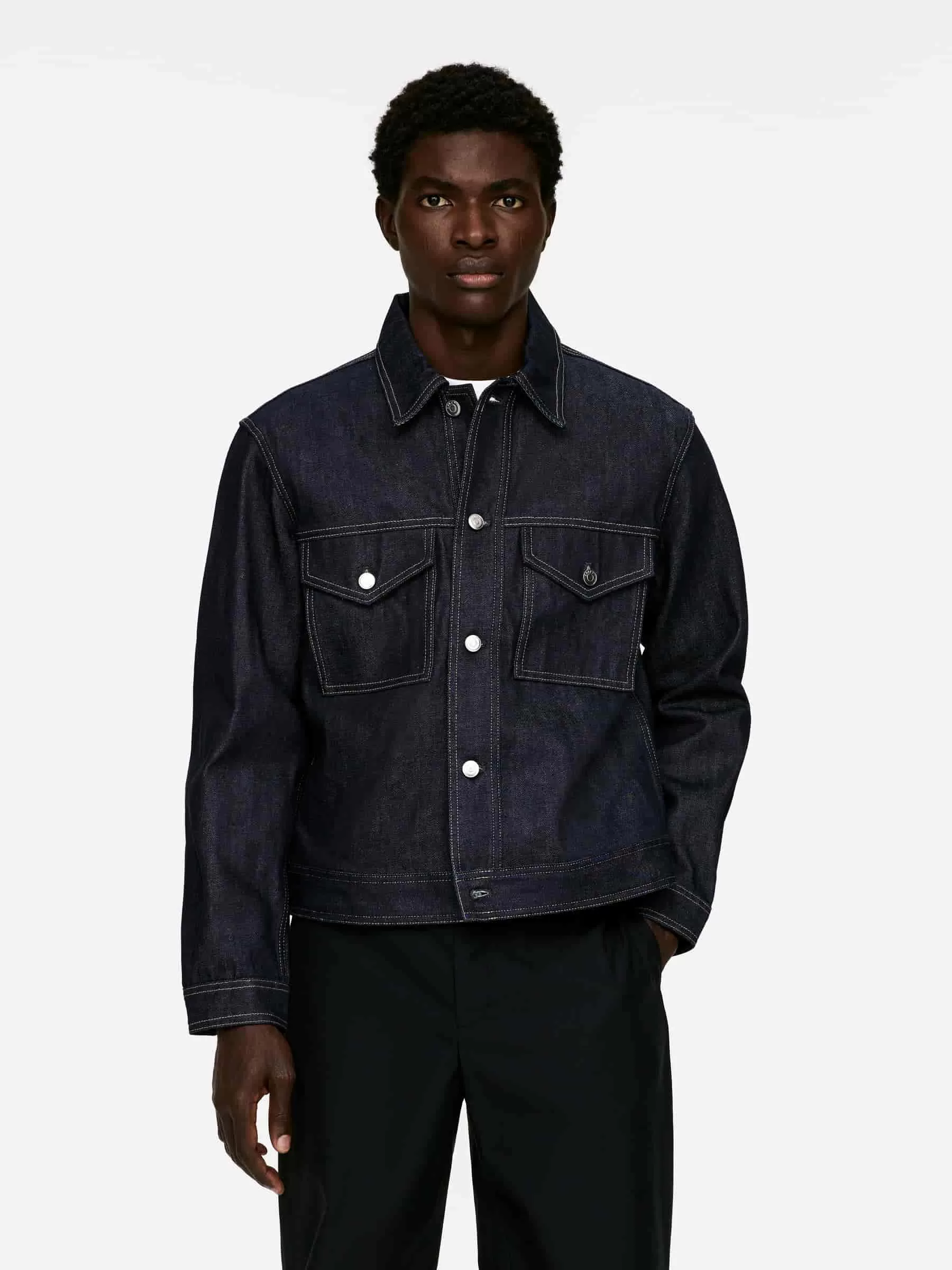 Klassische Jeansjacke in normaler Passform. Hergestellt aus rohem Denim. Mit normalem Kragen, Ösenknöpfen und Brusttaschen mit geknöpften Klappen.