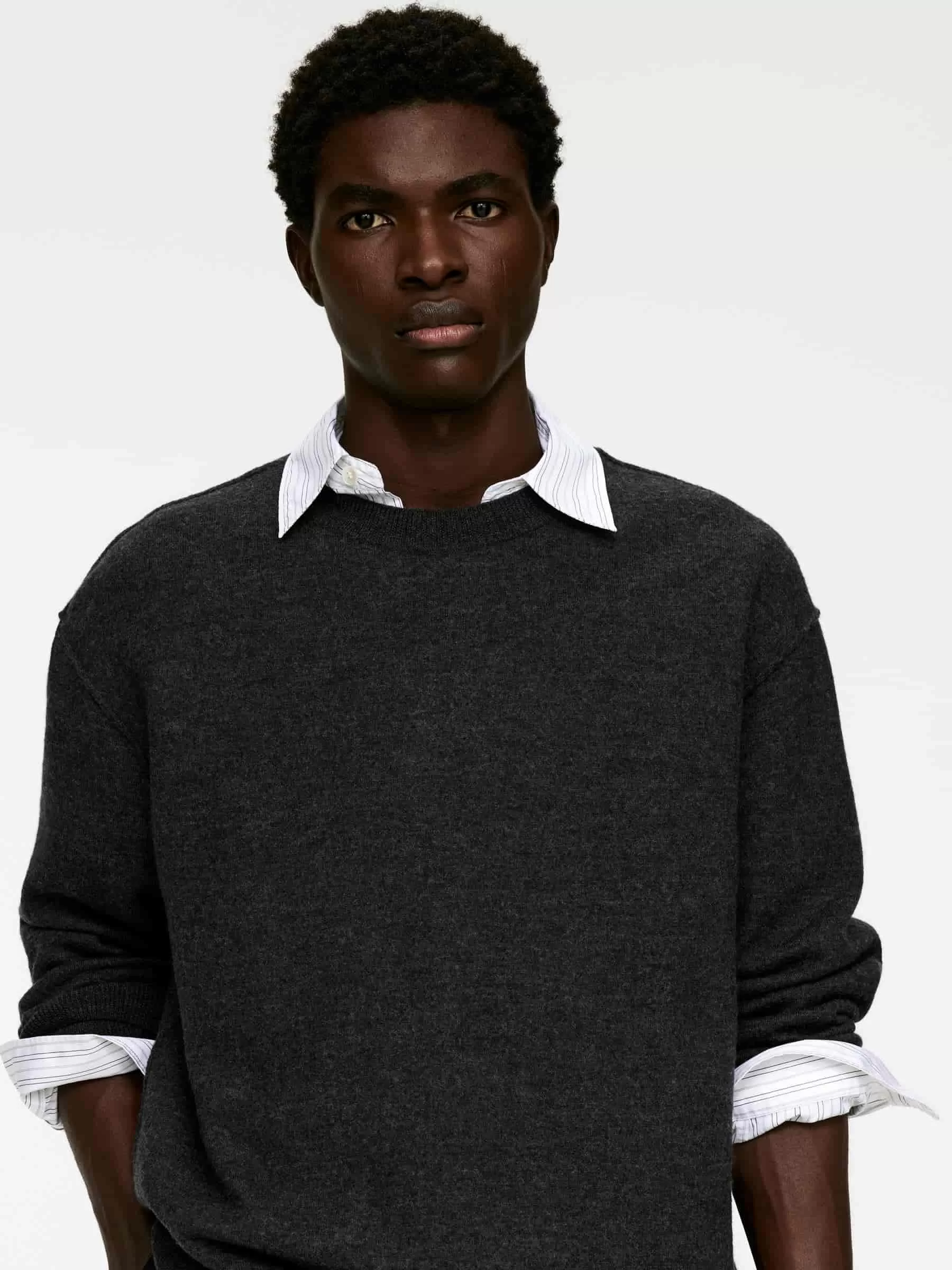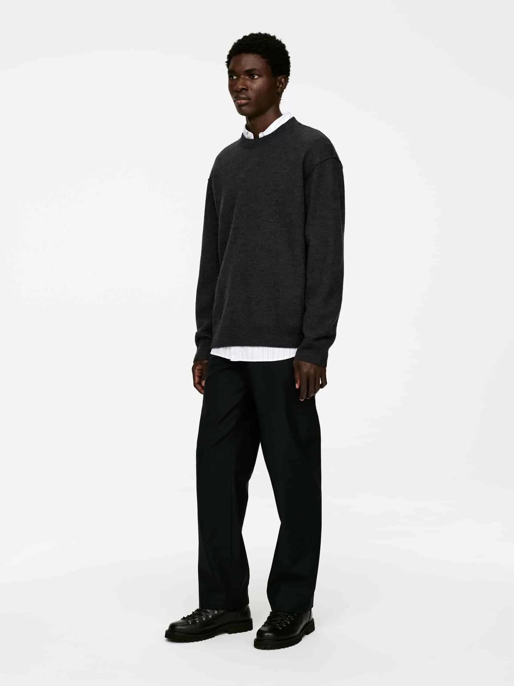 ARKE Herren Rundhalspullover aus gekochter Wolle Dunkelgrau