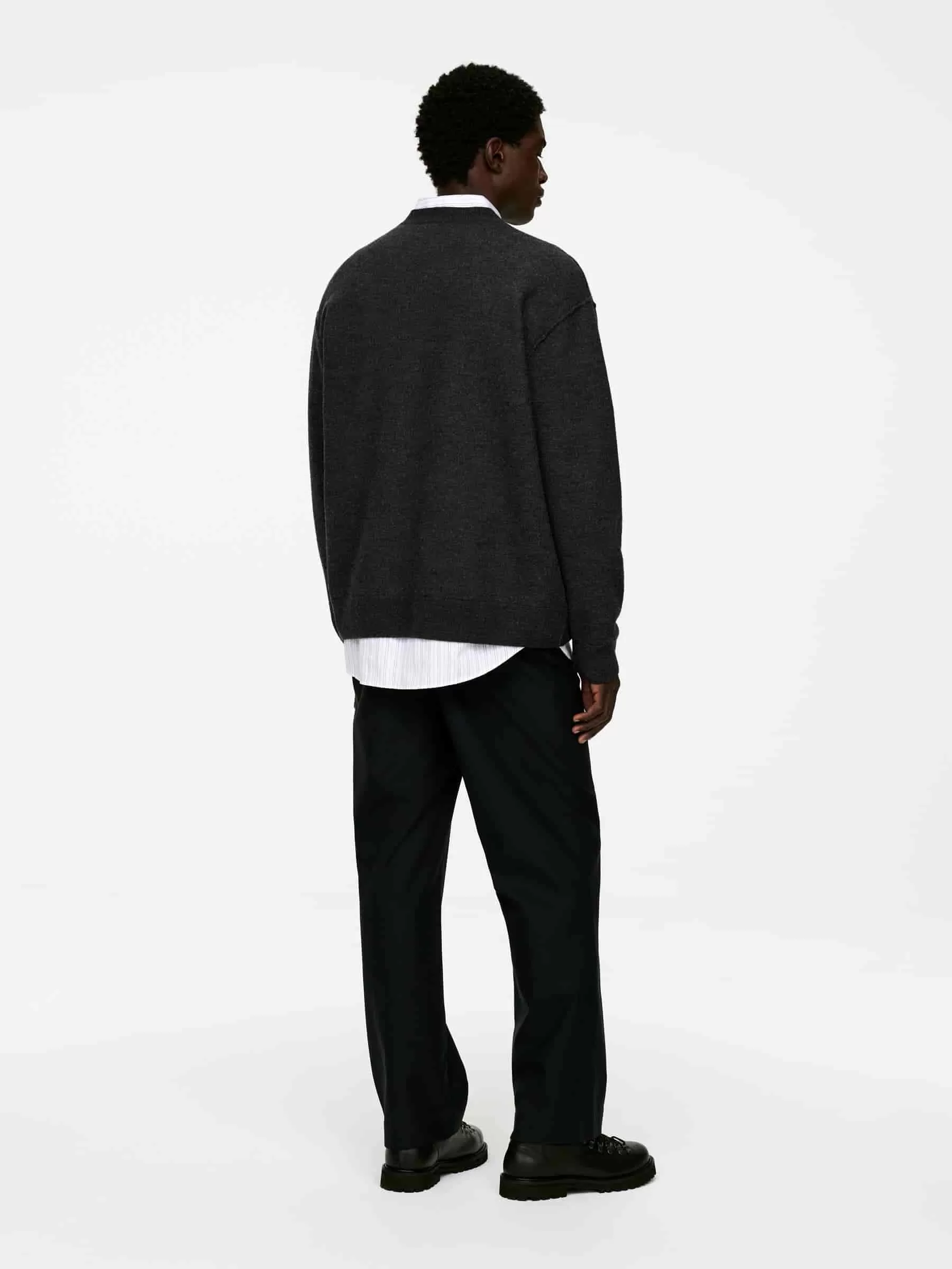 Pullover aus gekochter Wolle. Ein Modell mit Rundhalsausschnitt und überschnittenen Schultern. Besätze aus Rippenstrick. Das Produkt enthält 100 % RWS-Wolle (TE-00047206). Produkte, die nach dem Responsible Wool Standard (RWS) zertifiziert sind, enthalten Wollfasern von Farmen, die unabhängig nach Tierschutz- und Landbewirtschaftungsanforderungen zertifiziert sind.