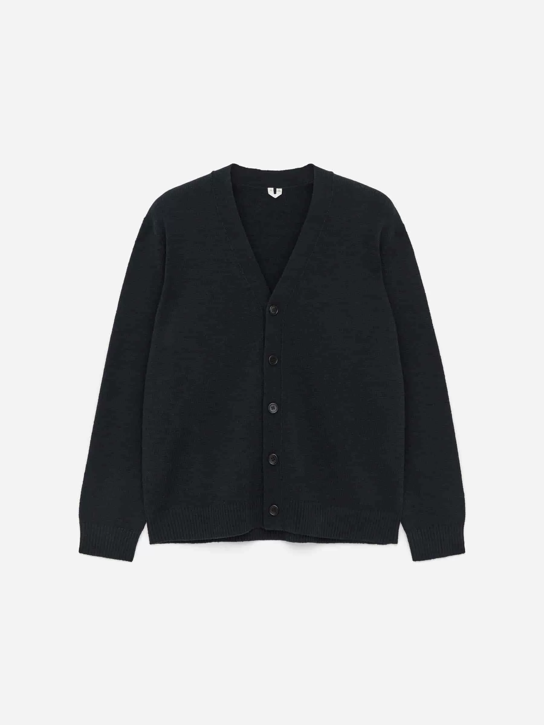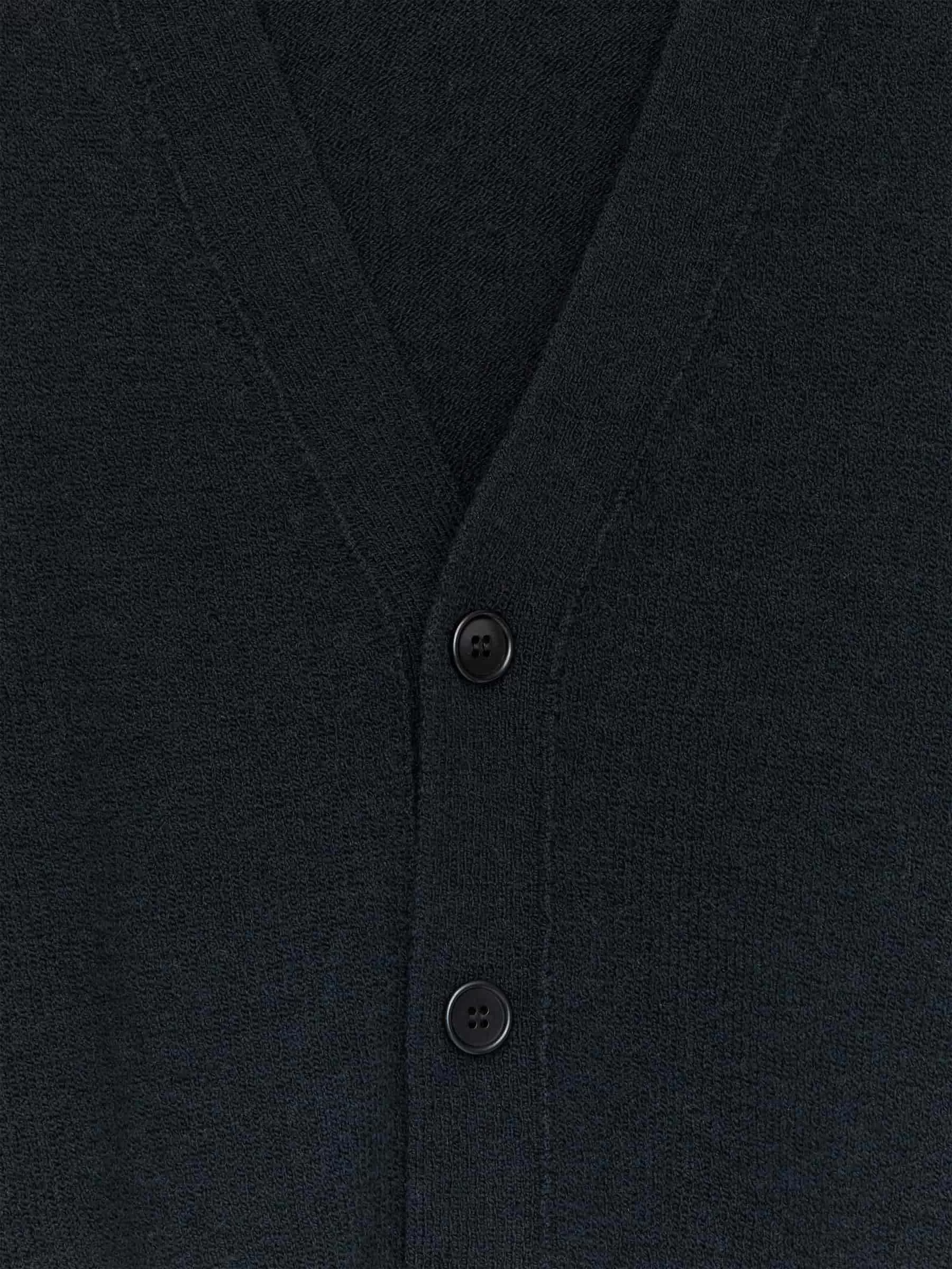 Cardigan mit V-Ausschnitt, gestrickt aus einer Mischung aus RWS-Wolle und Baumwolle. Detailliert mit Knöpfen vorne und gerippten Besätzen. Entspannte Passform. Das Produkt enthält 60 % RWS-Wolle (TE-00047206). Produkte, die nach dem Responsible Wool Standard (RWS) zertifiziert sind, enthalten Wollfasern von Farmen, die unabhängig nach Tierschutz- und Landbewirtschaftungsanforderungen zertifiziert sind.