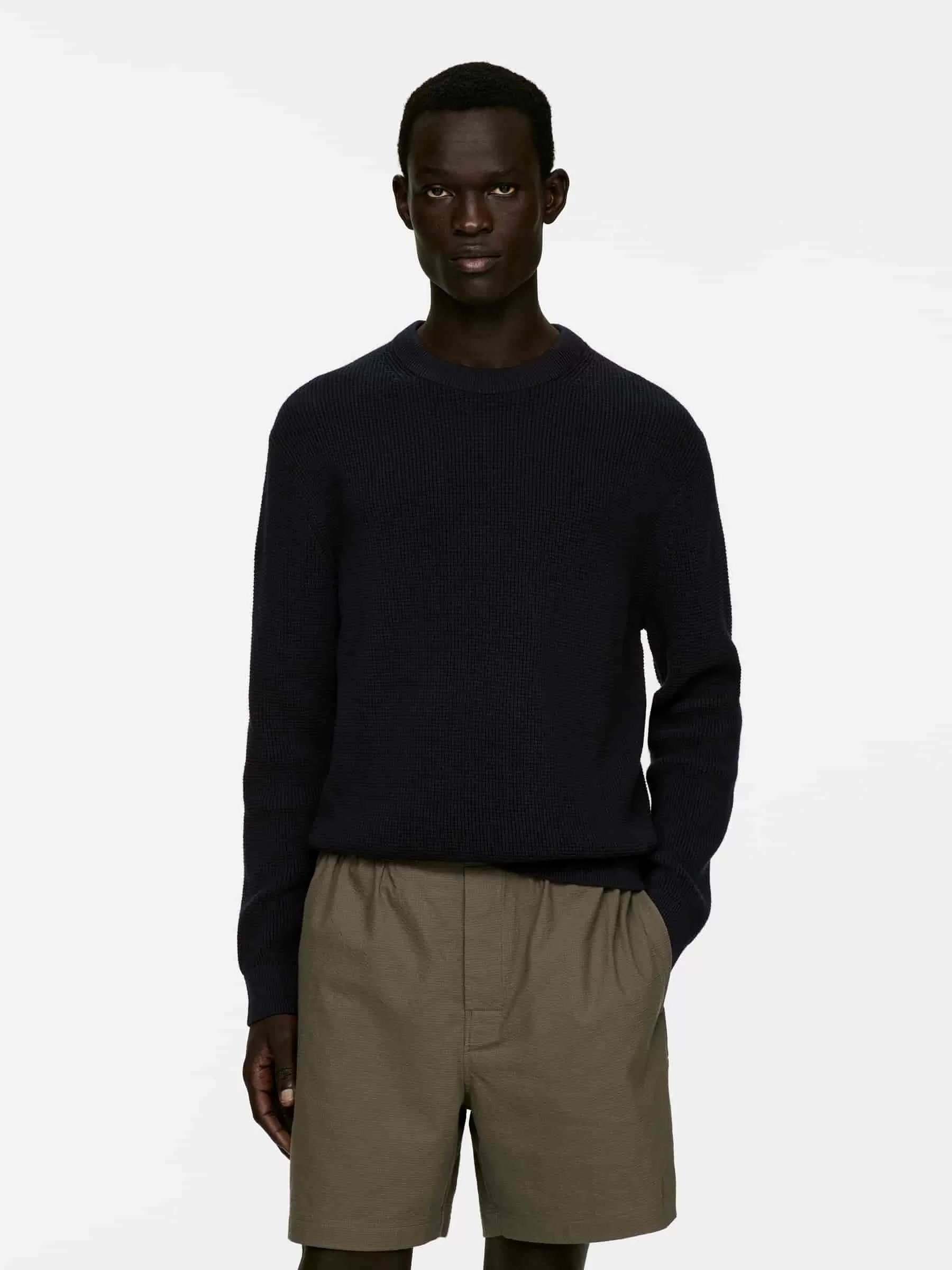 ARKE Herren Waffelstrickpullover Dunkelblau