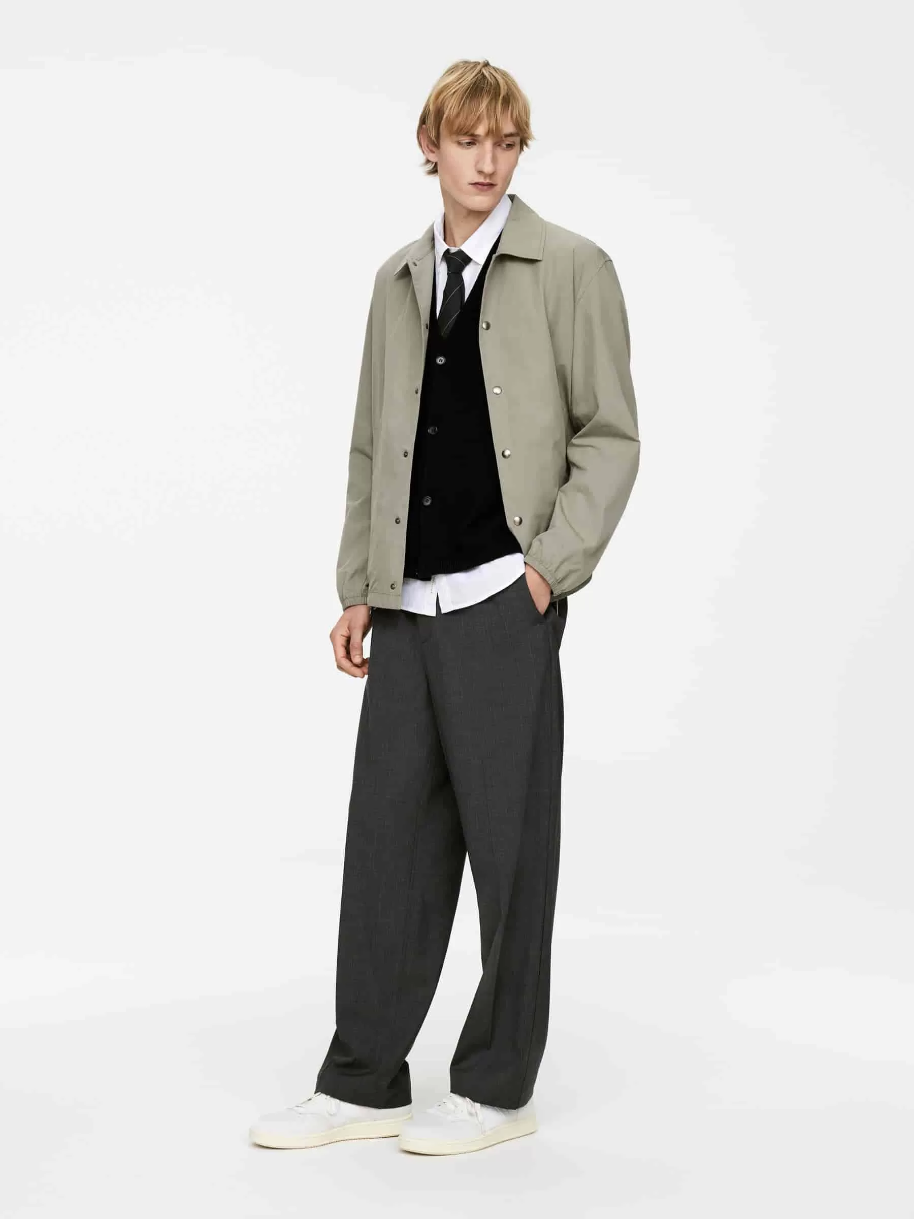 Westen-Cardigan, gestrickt aus einem Woll-Baumwoll-Mischgarn mit leichter Textur. Ein Modell mit V-Ausschnitt, Knopfleiste vorne und Rippstrickbesätzen. Das Produkt enthält 60 % RWS-Wolle (TE-00047206). Produkte, die nach dem Responsible Wool Standard (RWS) zertifiziert sind, enthalten Wollfasern von Farmen, die unabhängig nach Tierschutz- und Landbewirtschaftungsanforderungen zertifiziert sind.