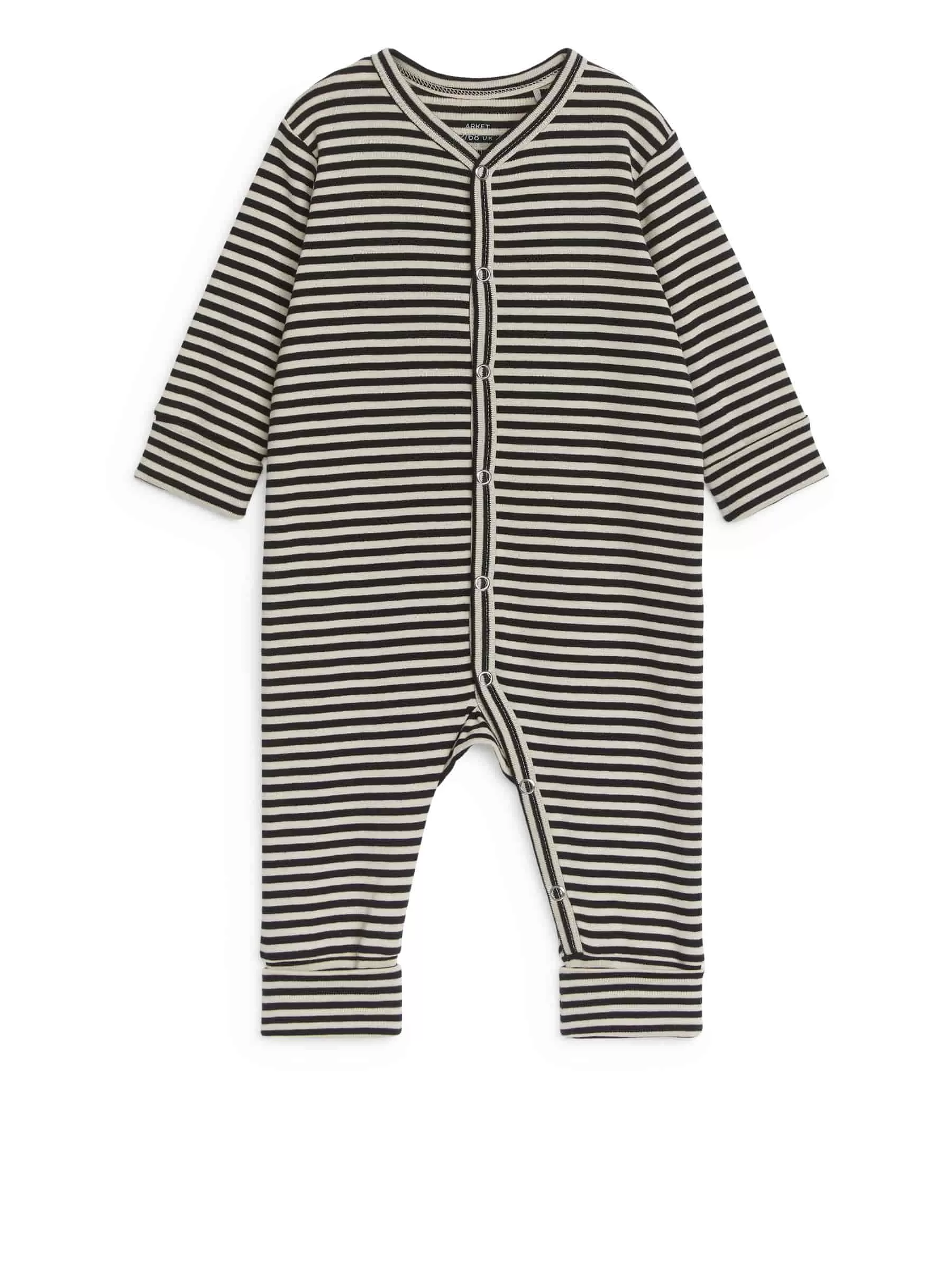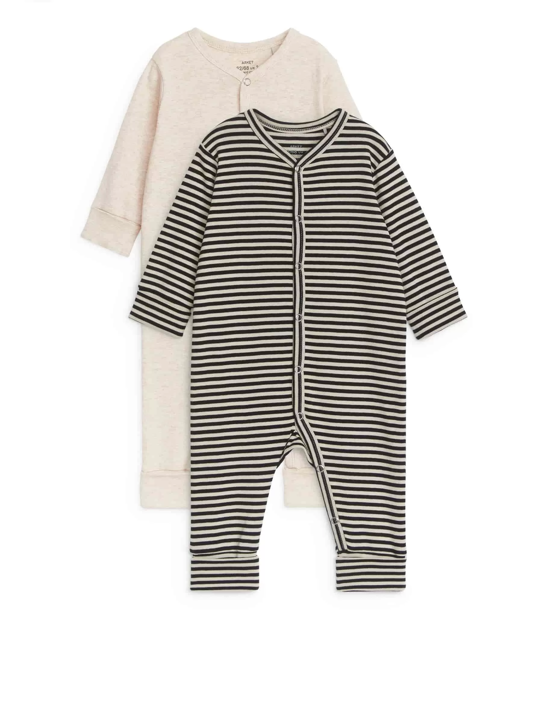 Pyjama-Overall aus Baumwolljersey. Weiche und bequeme Teile mit faltbaren Bündchen an Ärmel- und Beinenden. Druckknöpfe von Kopf bis Fuß erleichtern das An- und Ausziehen. Verkauft im 2er-Set.