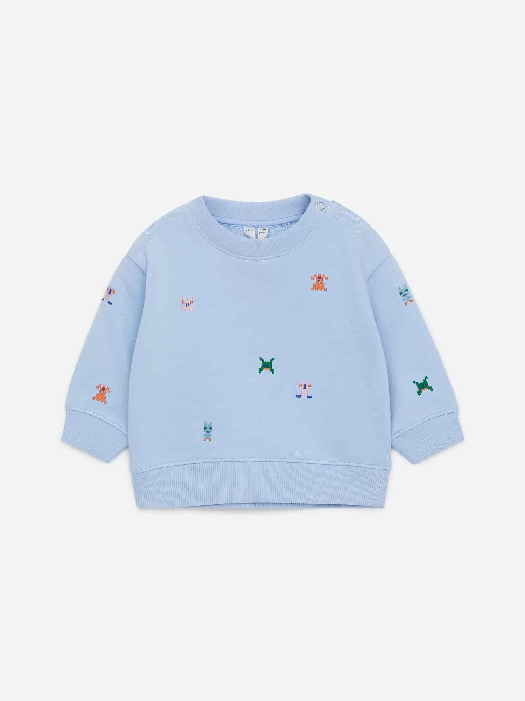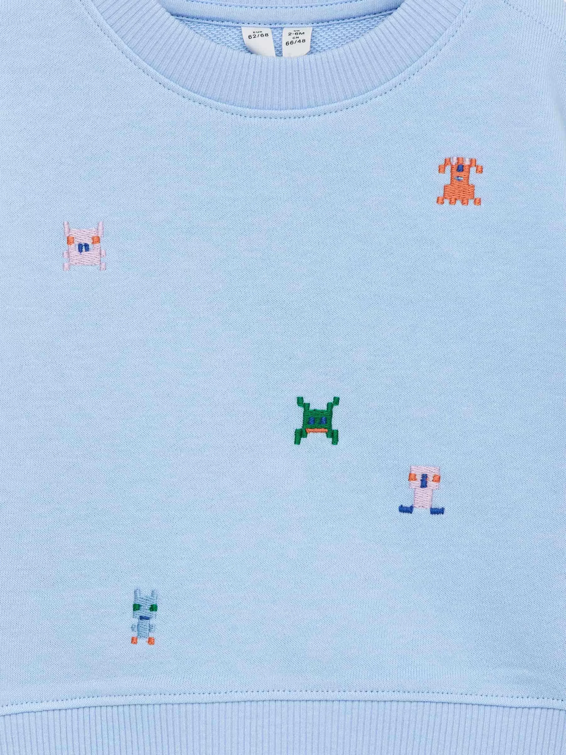 Sweatshirt mit normaler Passform und gestickten Details. Dieses Modell besteht aus Baumwolle mit einer weichen, gebürsteten Innenseite. Druckknopf an der Schulter zum einfachen Anziehen und gerippte Abschlüsse.