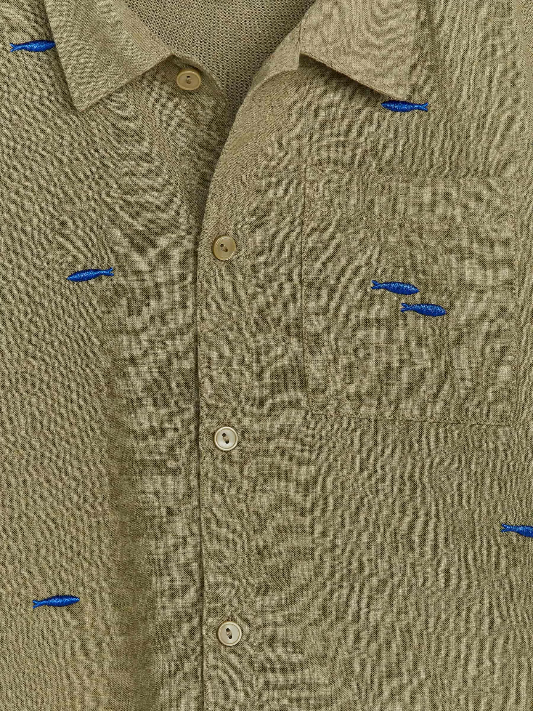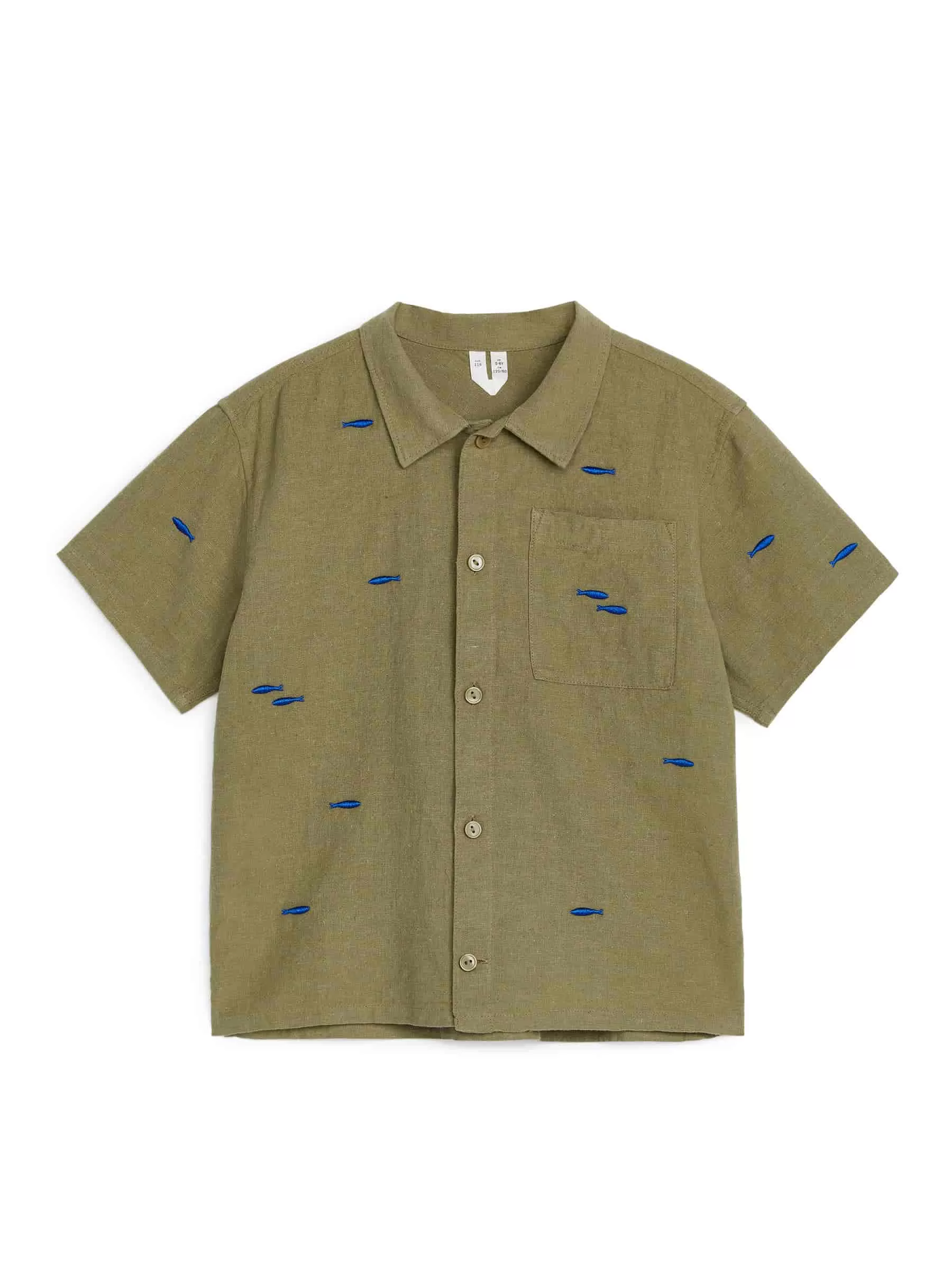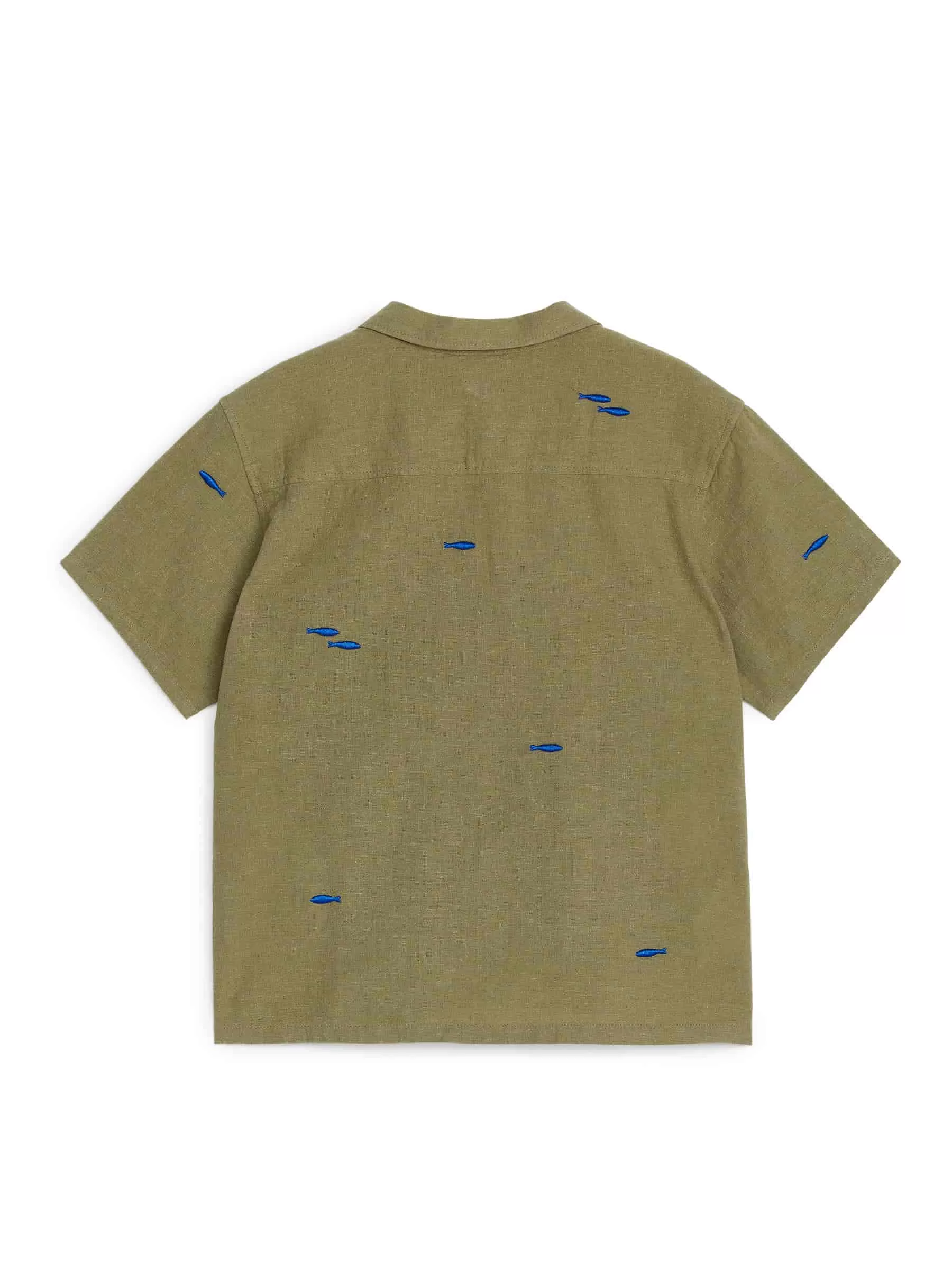 ARKE Kinder Besticktes Hemd aus Leinen-Baumwolle Khakigrün