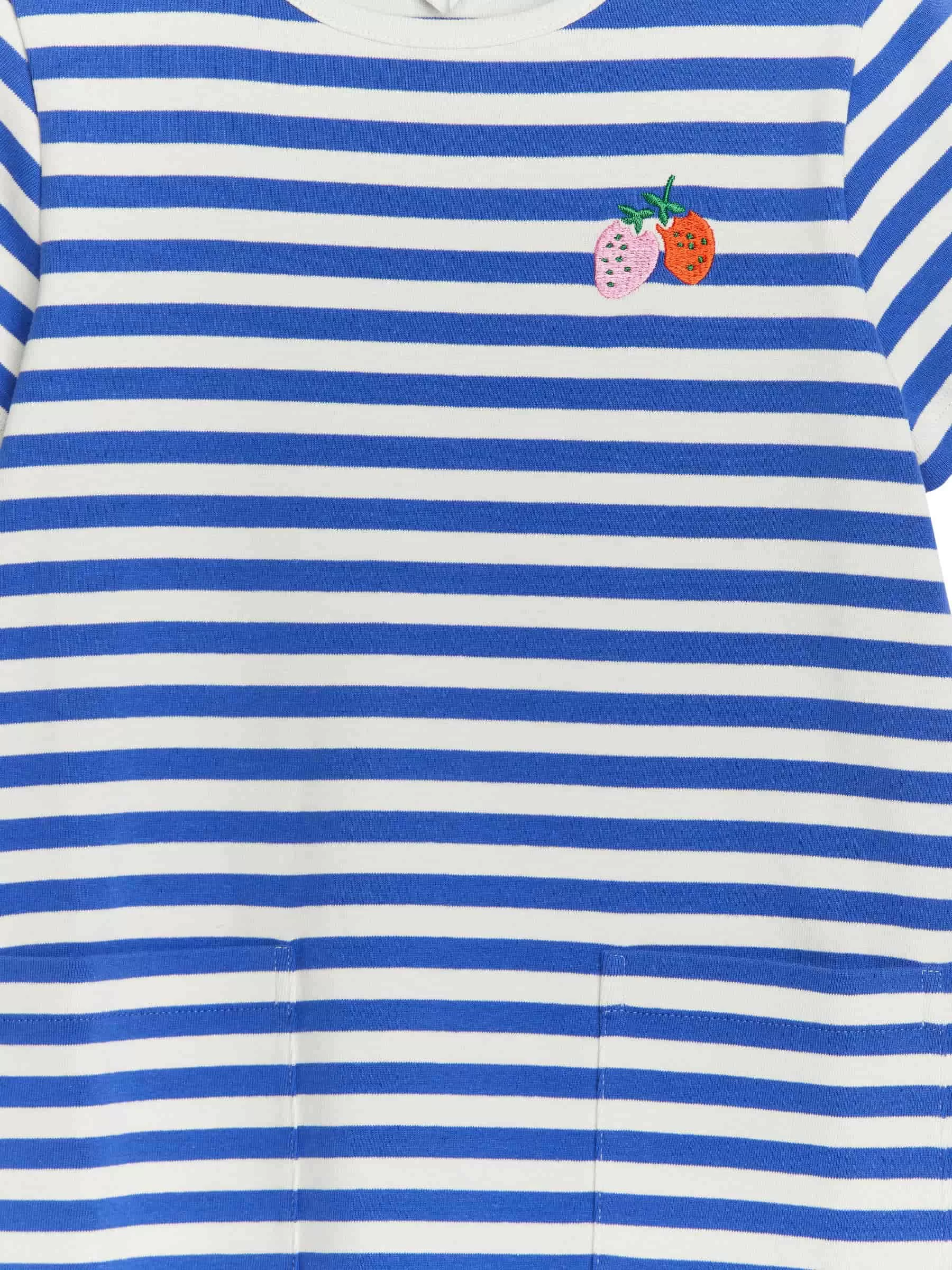 T-Shirt-Kleid aus gerippter Baumwolle mit gestickten Details auf der Brust. Aufgesetzte Taschen. Entspannte Passform.