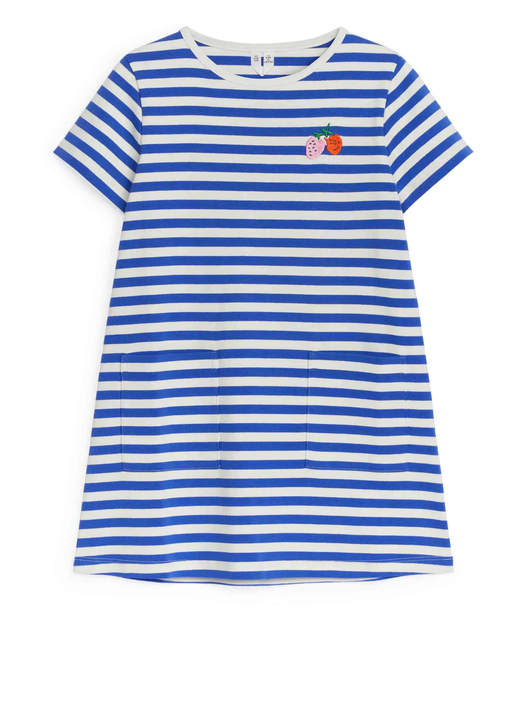 ARKE Kinder Besticktes T-Shirt-Kleid Weiß/Blau