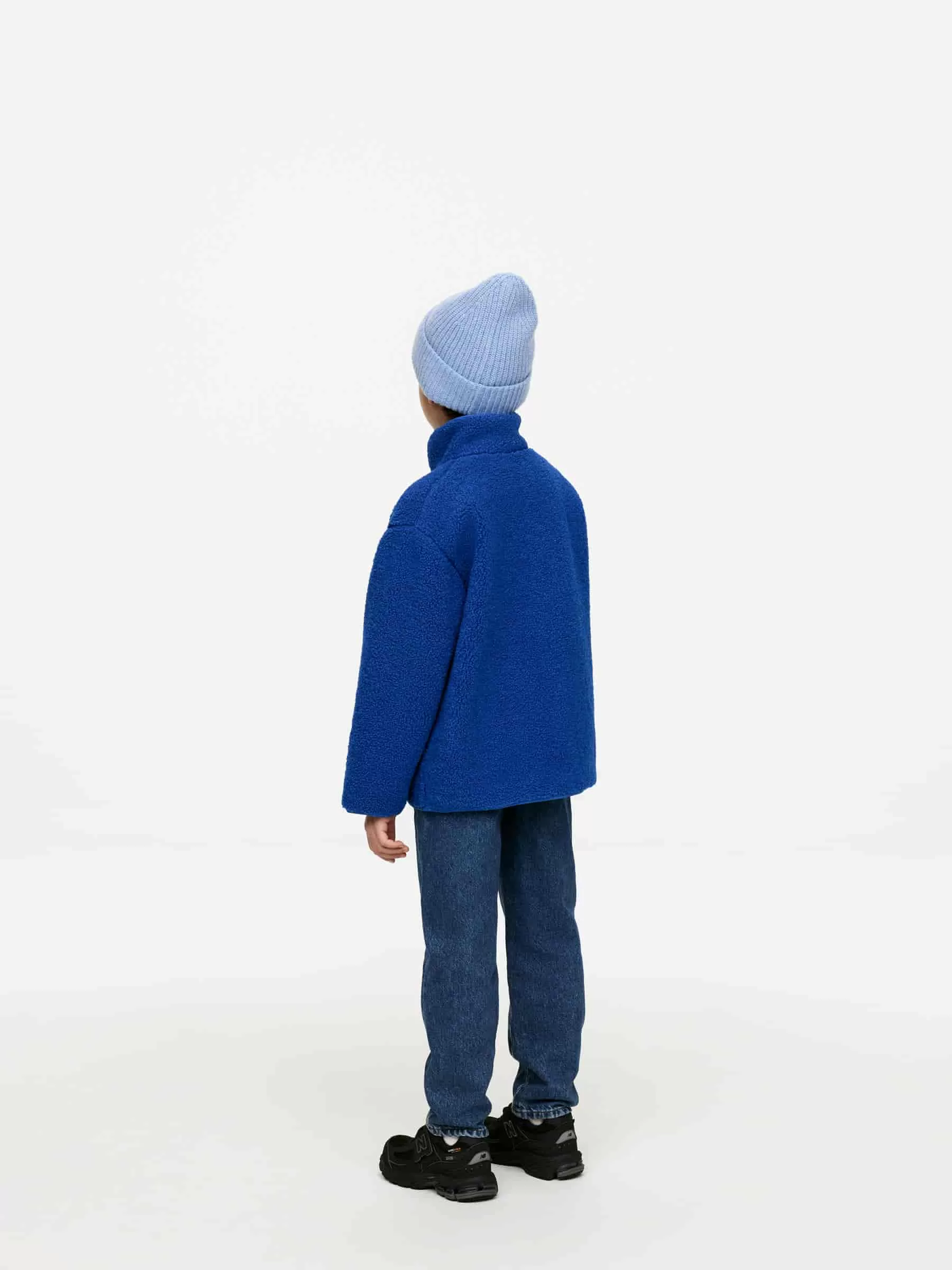 Florjacke mit überschnittenen Schultern, bequemem Stehkragen und aufgesetzten Nylontaschen. Normale Passform.