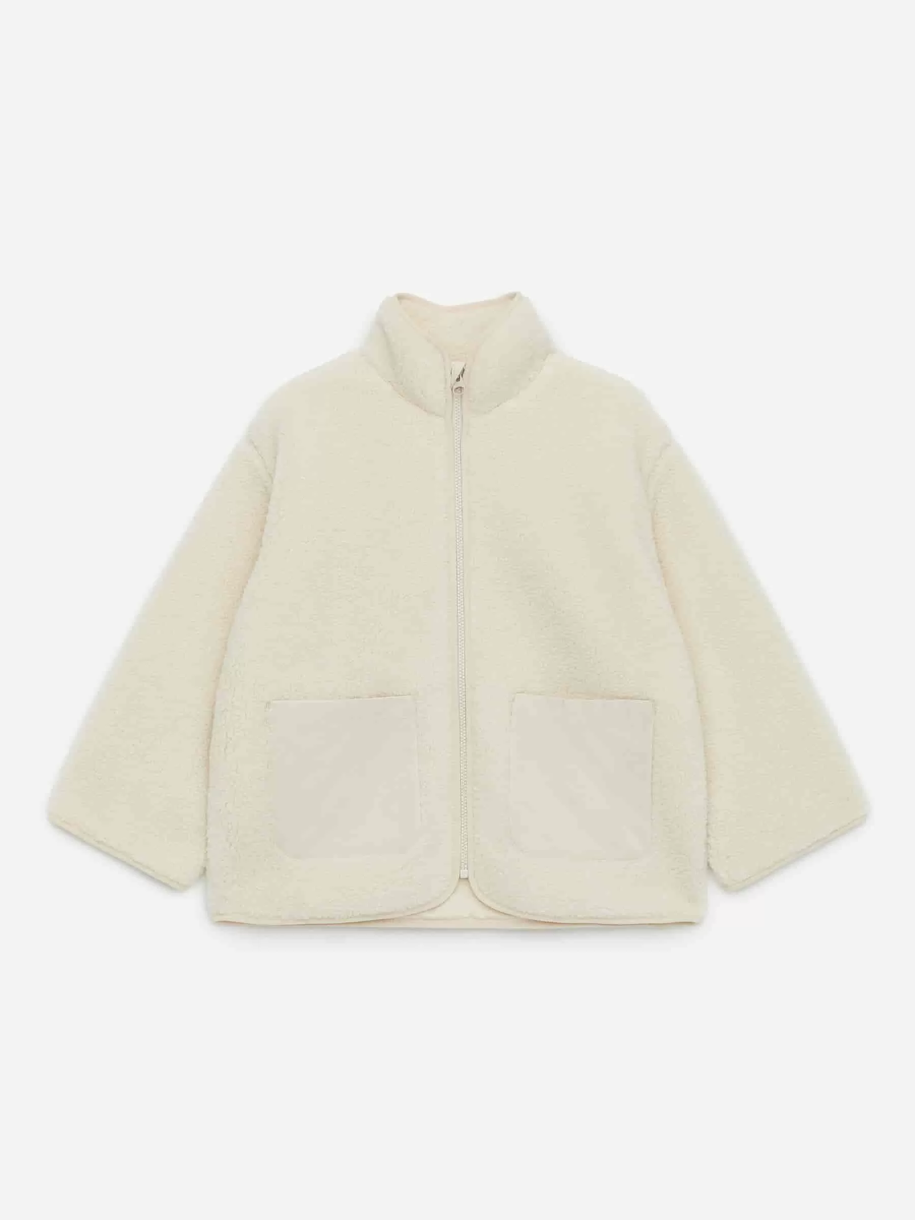 Florjacke mit überschnittenen Schultern, bequemem Stehkragen und aufgesetzten Nylontaschen. Normale Passform.