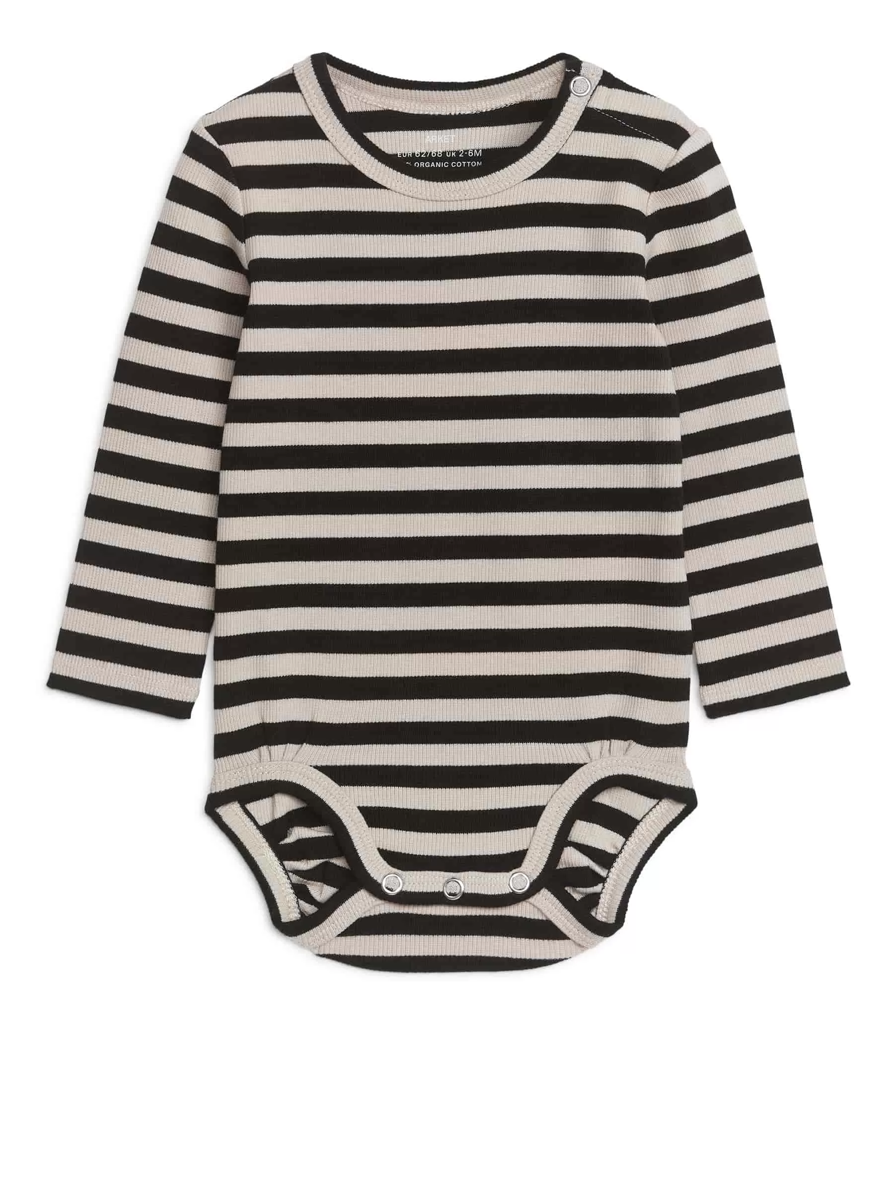 Langärmliger Body aus weichem Baumwolljersey mit natürlich dehnbarer Rippenkonstruktion. Druckknöpfe an der Schulter und im Schritt erleichtern das An- und Ausziehen.