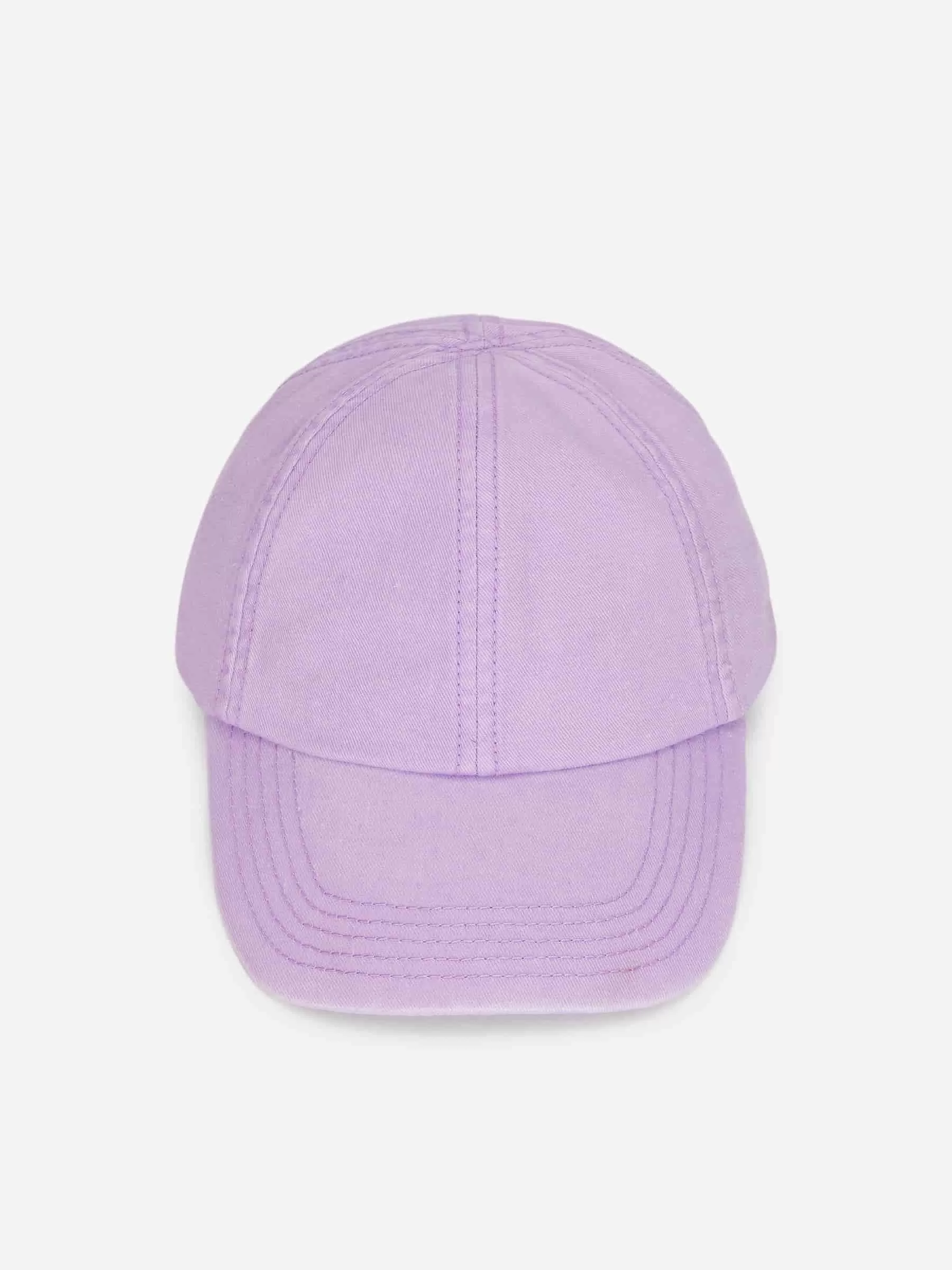 Baseballkappe mit gebogenem Schirm aus weichem Baumwolltwill. Verstellbarer Riemen mit Metallschnalle hinten.