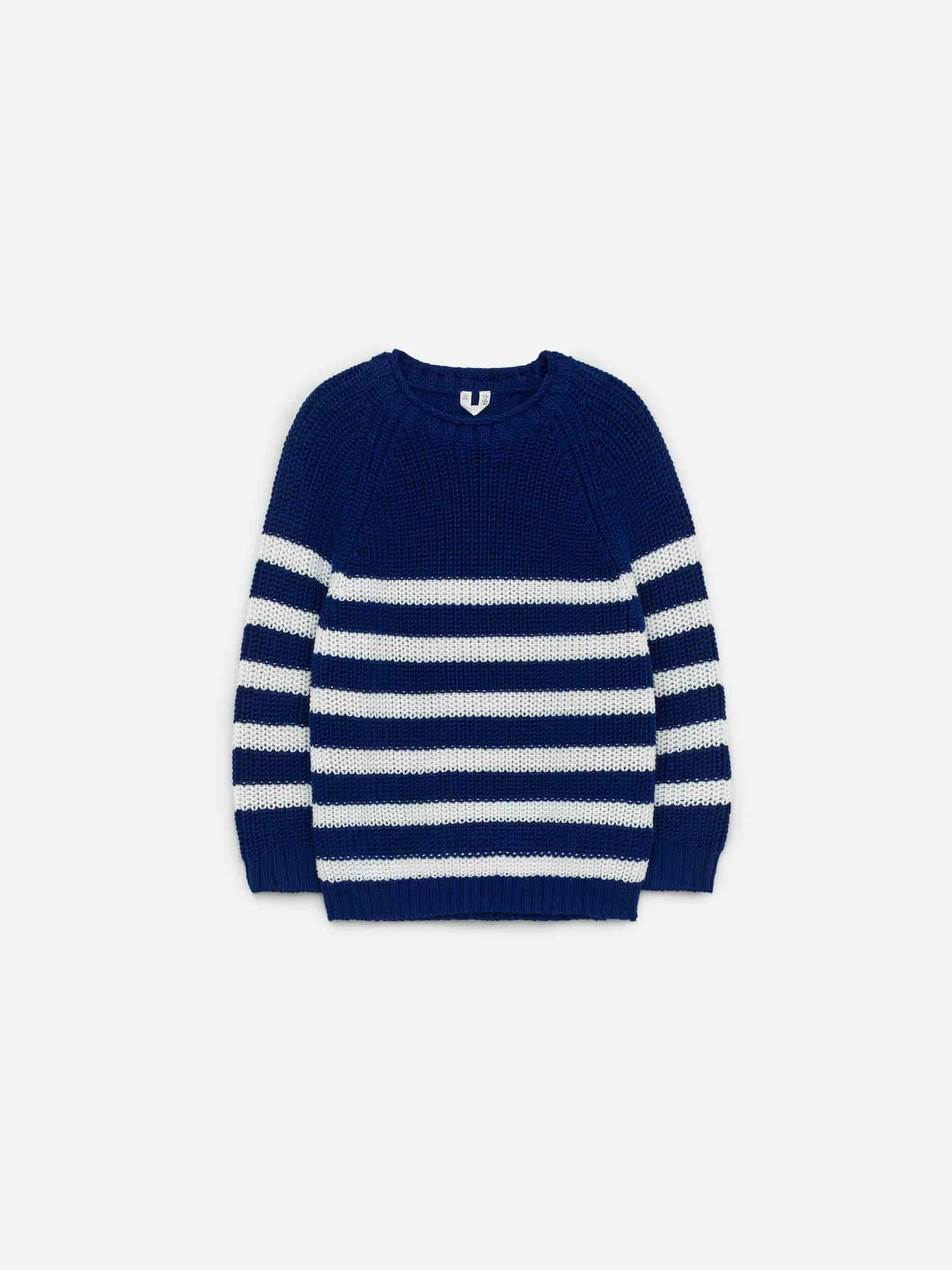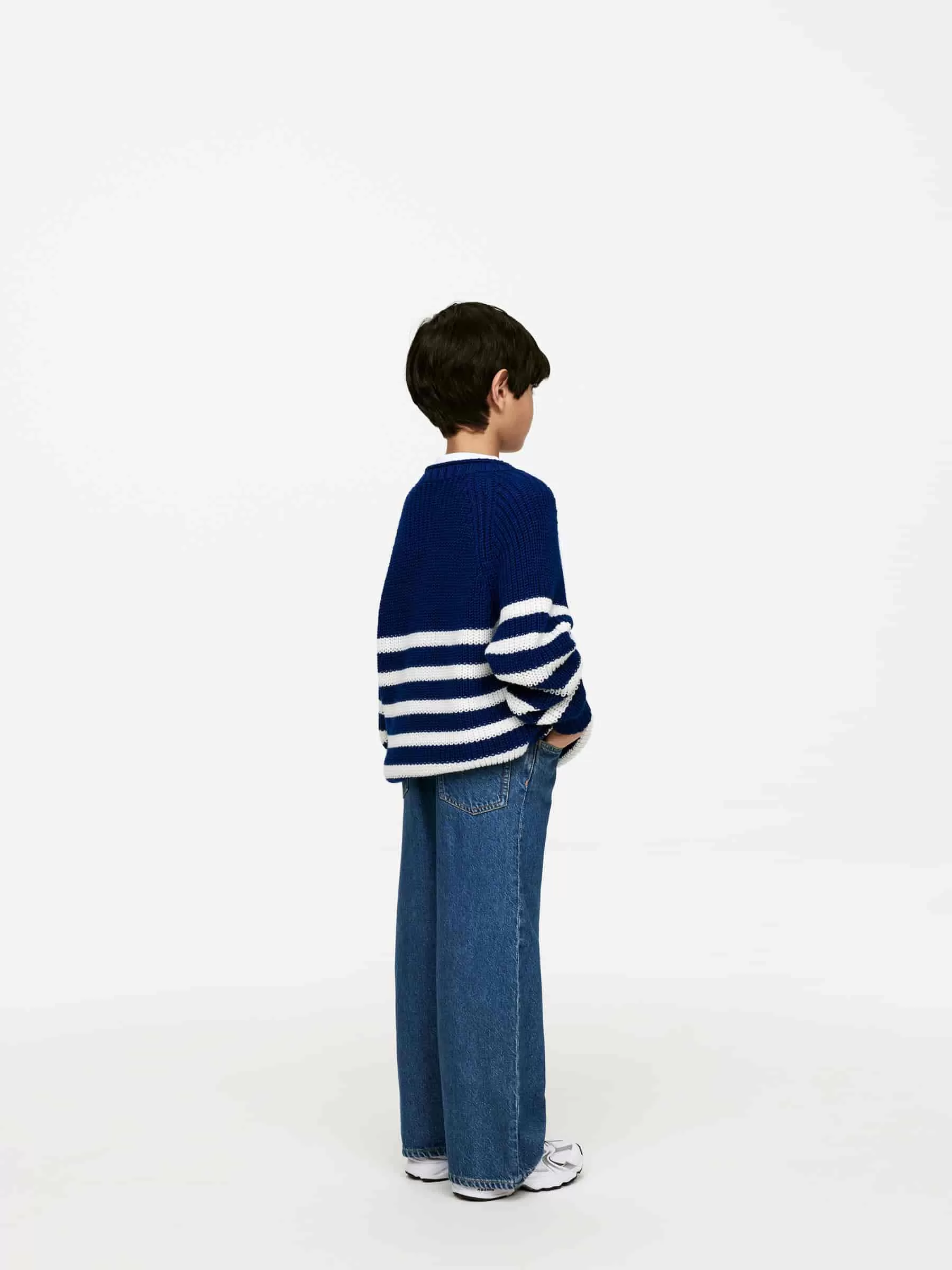 ARKE Kinder Grobstrickpullover Blau/Weiß