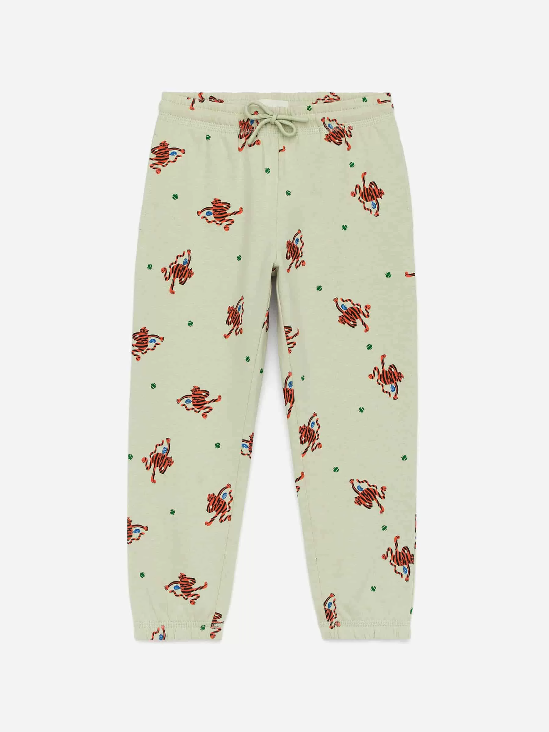 Allover-bedruckte Jogginghose in French-Terry-Qualität mit leicht gebürsteter Unterseite für zusätzlichen Komfort. Sie haben eine lockere Passform und verfügen über einen elastischen Kordelzug in der Taille, Seitentaschen und elastische Bündchen.