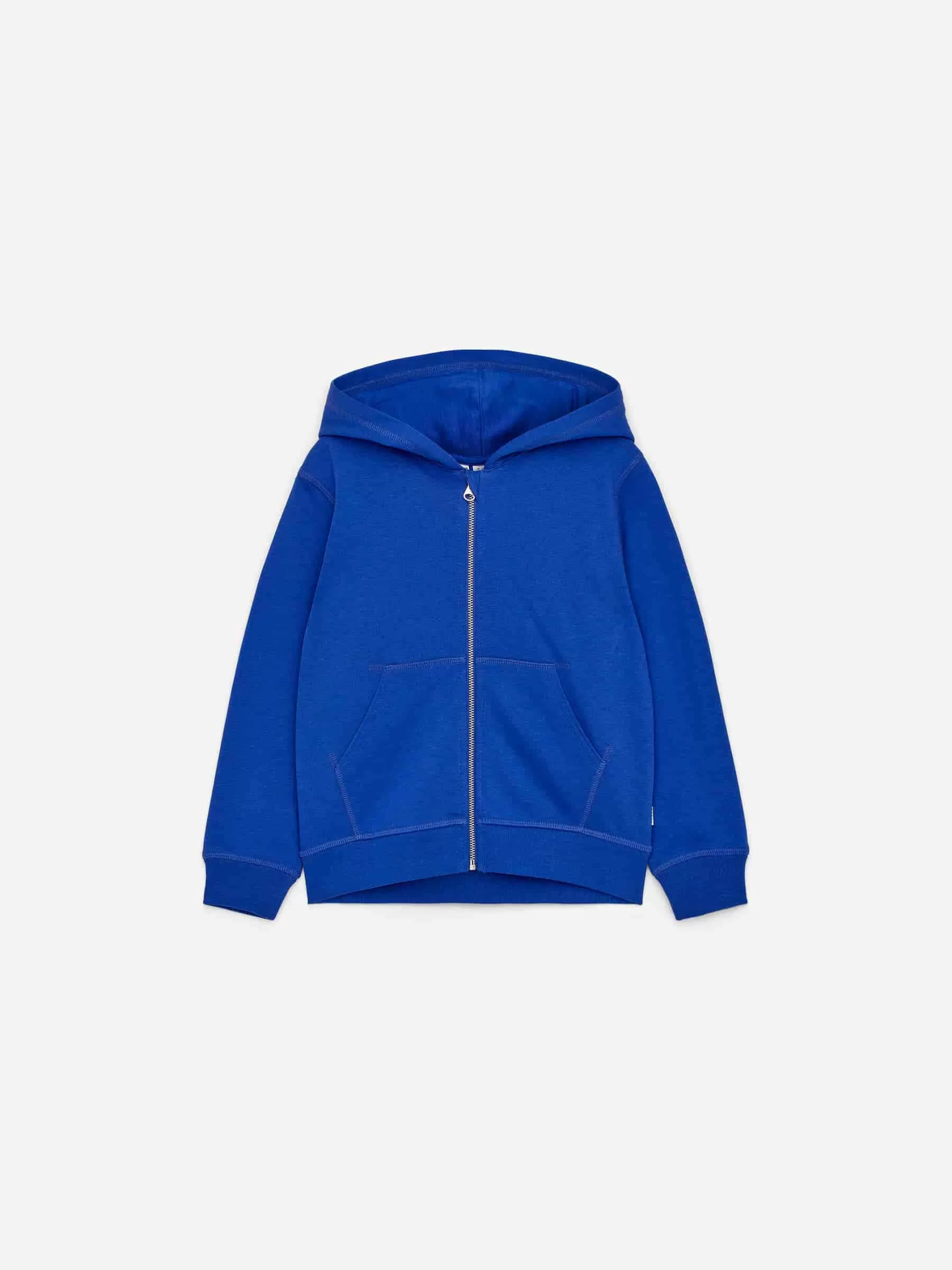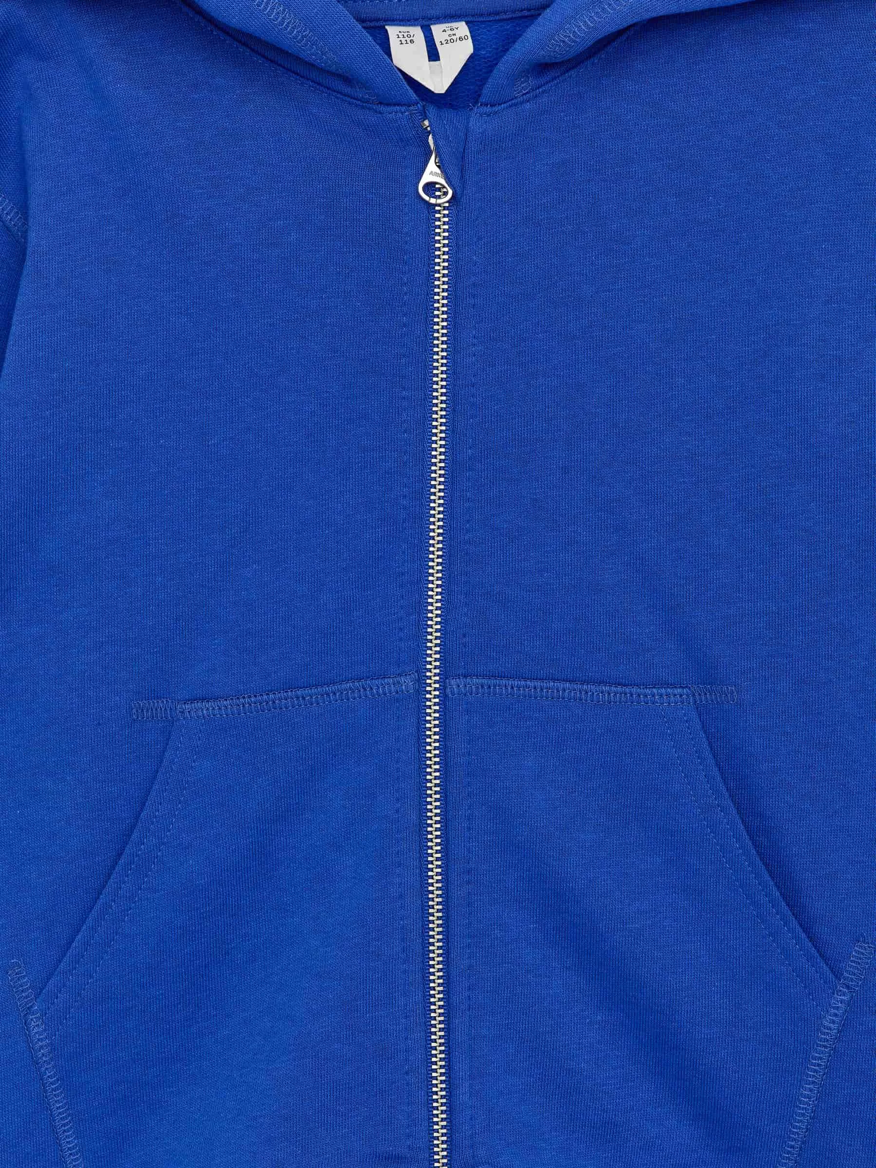 Sweatshirt mit Kapuze, Metallreißverschluss und gerippten Bündchen. Lockere Passform.
