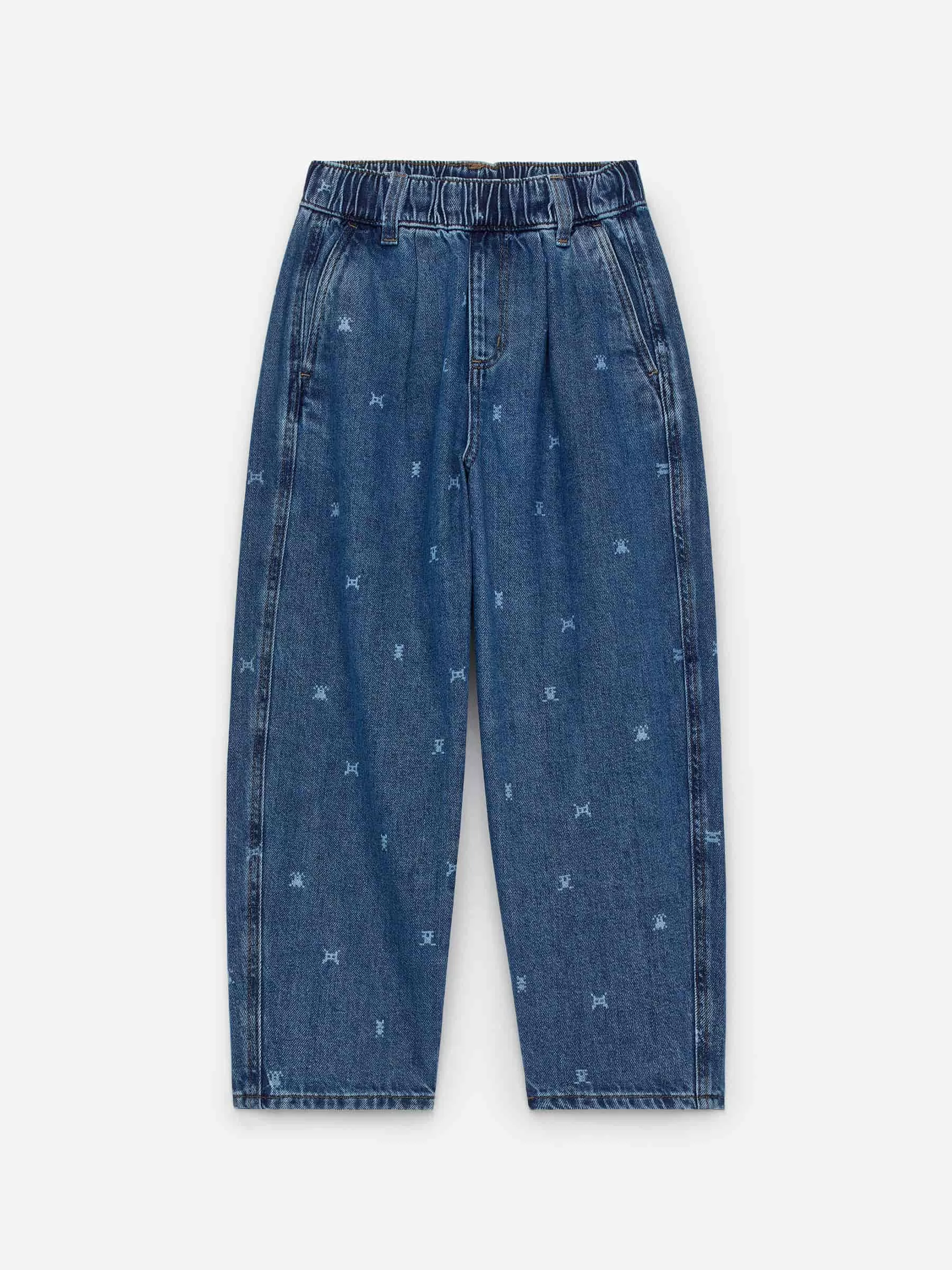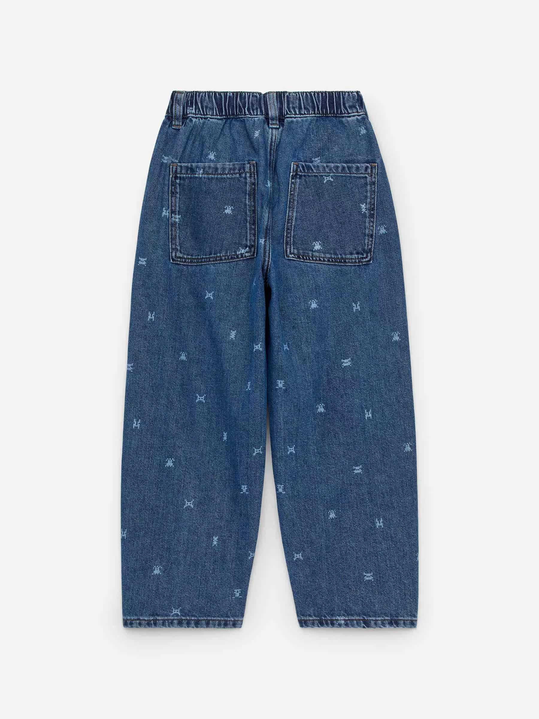 Jeanshose mit Allover-Print. Mit Falten vorne, künstlichem Hosenschlitz und verstellbarem Gummizug in der Taille. Schräge Seitentaschen und aufgesetzte Taschen hinten.