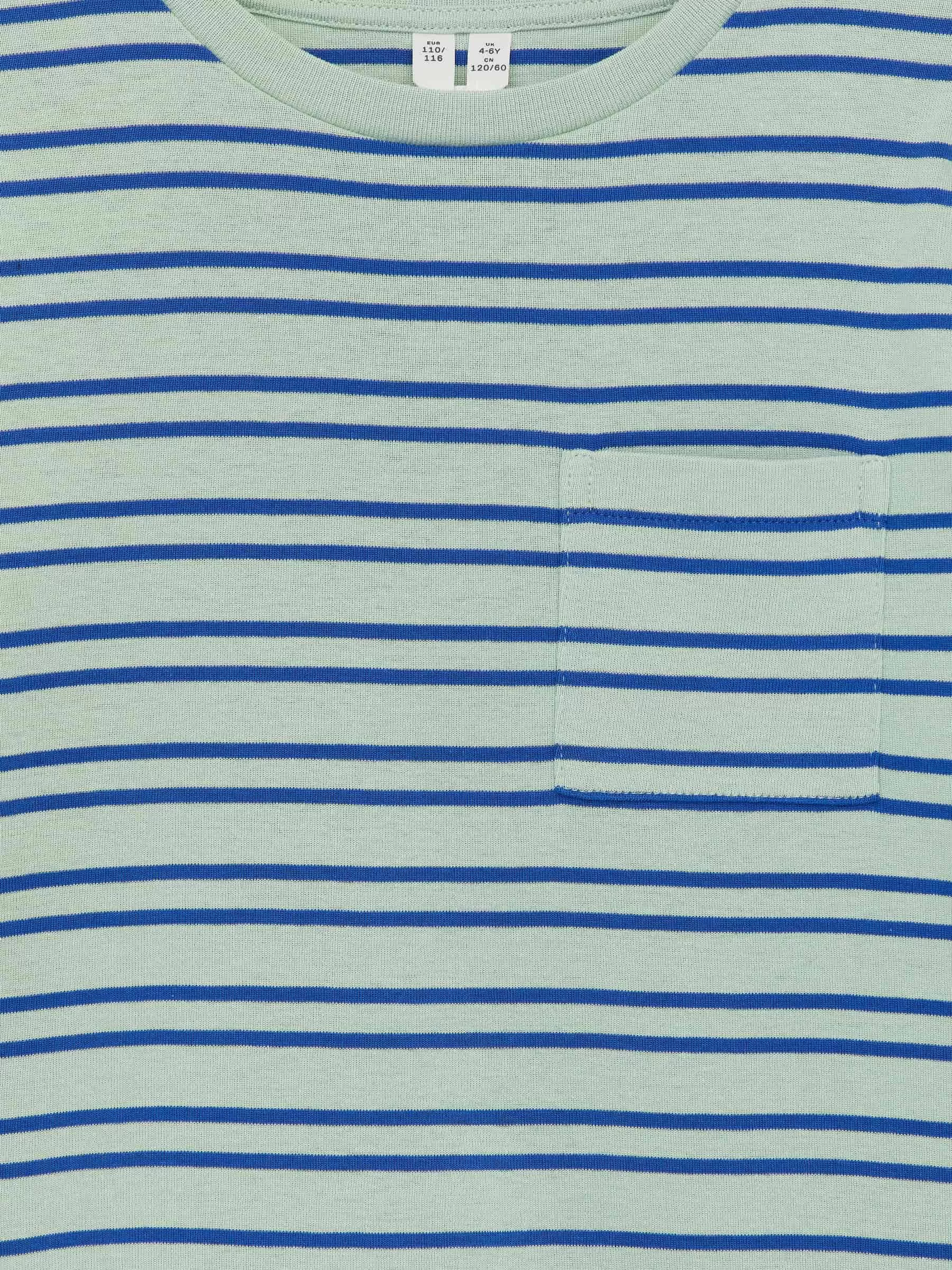 T-Shirt mit normaler Passform, gesponnen aus hochwertiger Baumwolle. Mit Rundhalsausschnitt, langen Ärmeln und einer einzelnen Brusttasche.