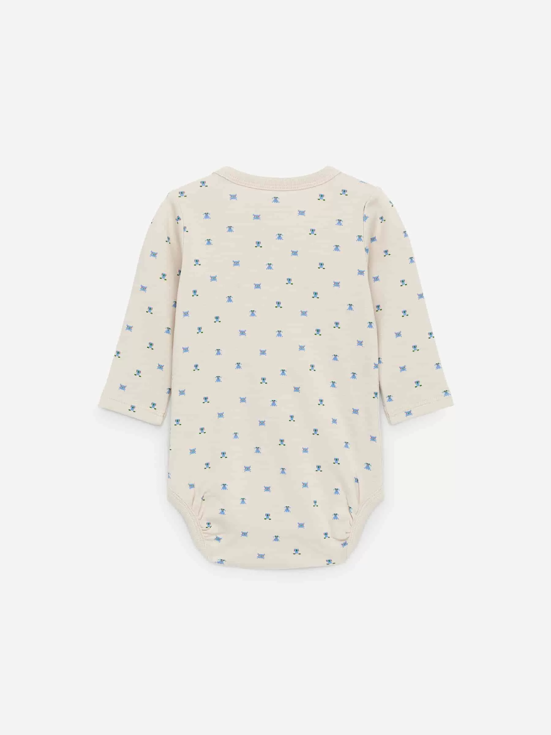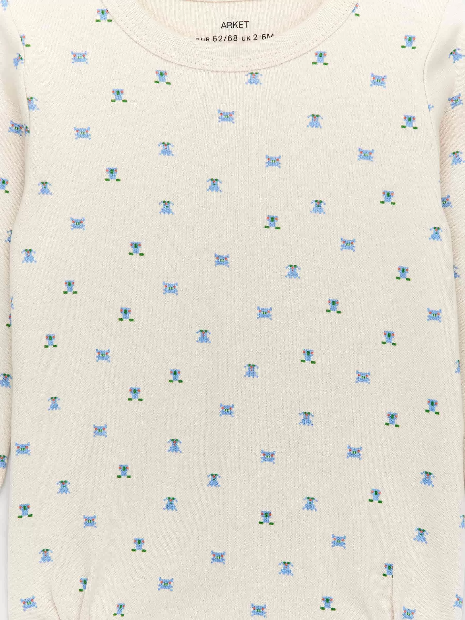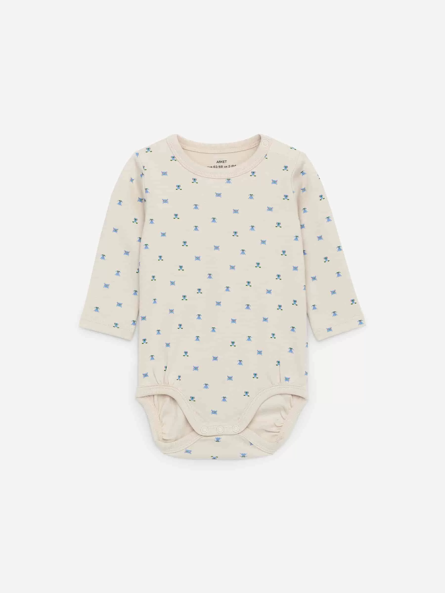 Langärmliger Body aus weichem Baumwolljersey. Druckknöpfe an der Schulter und im Schritt erleichtern das An- und Ausziehen.