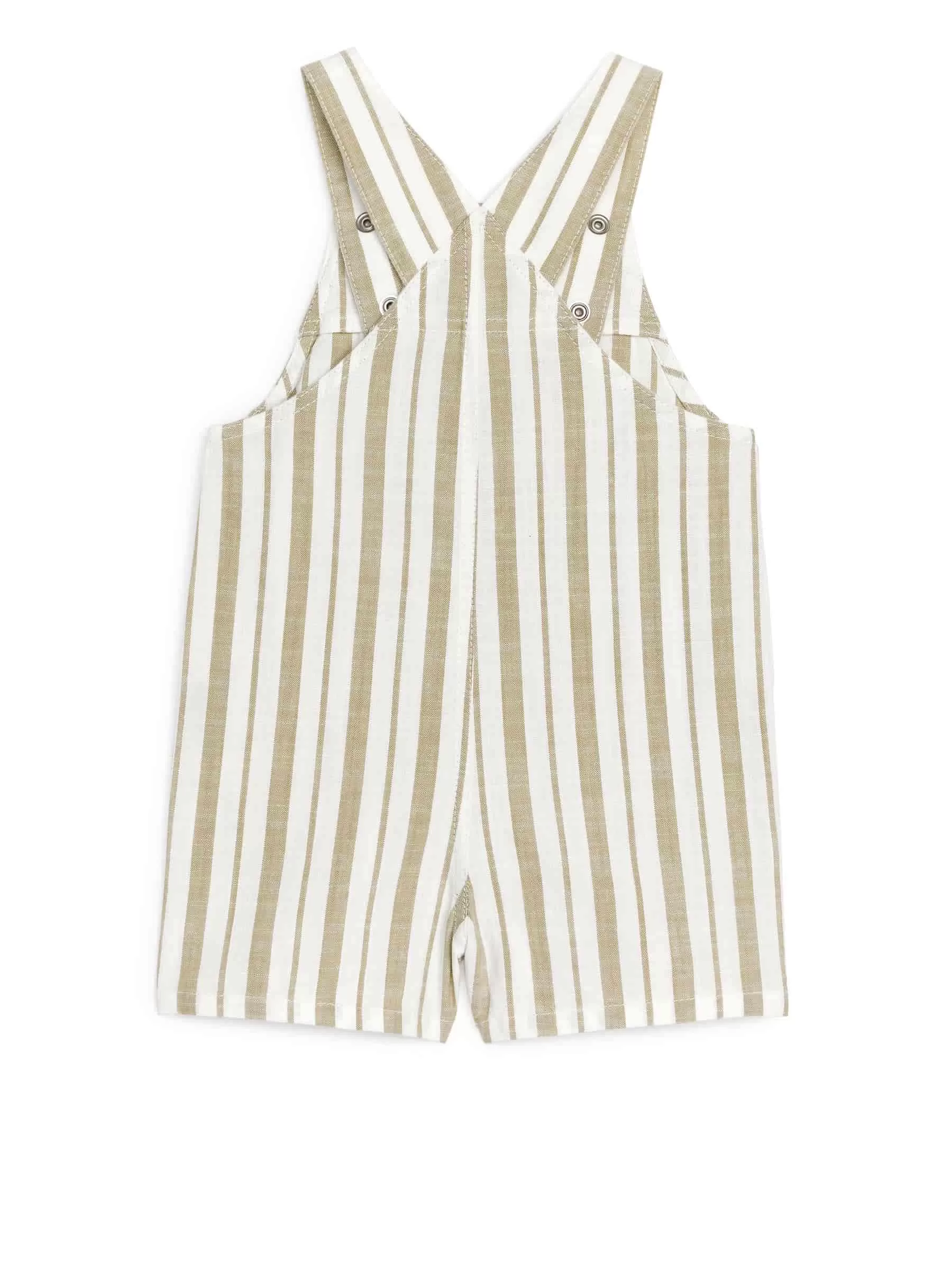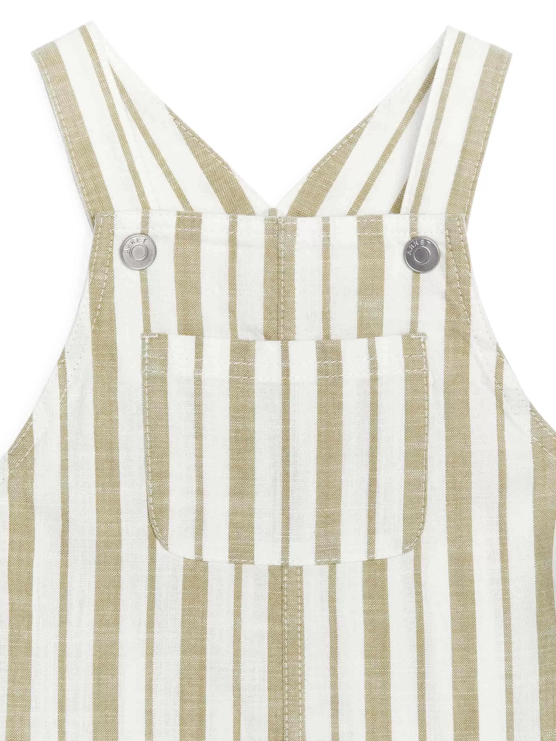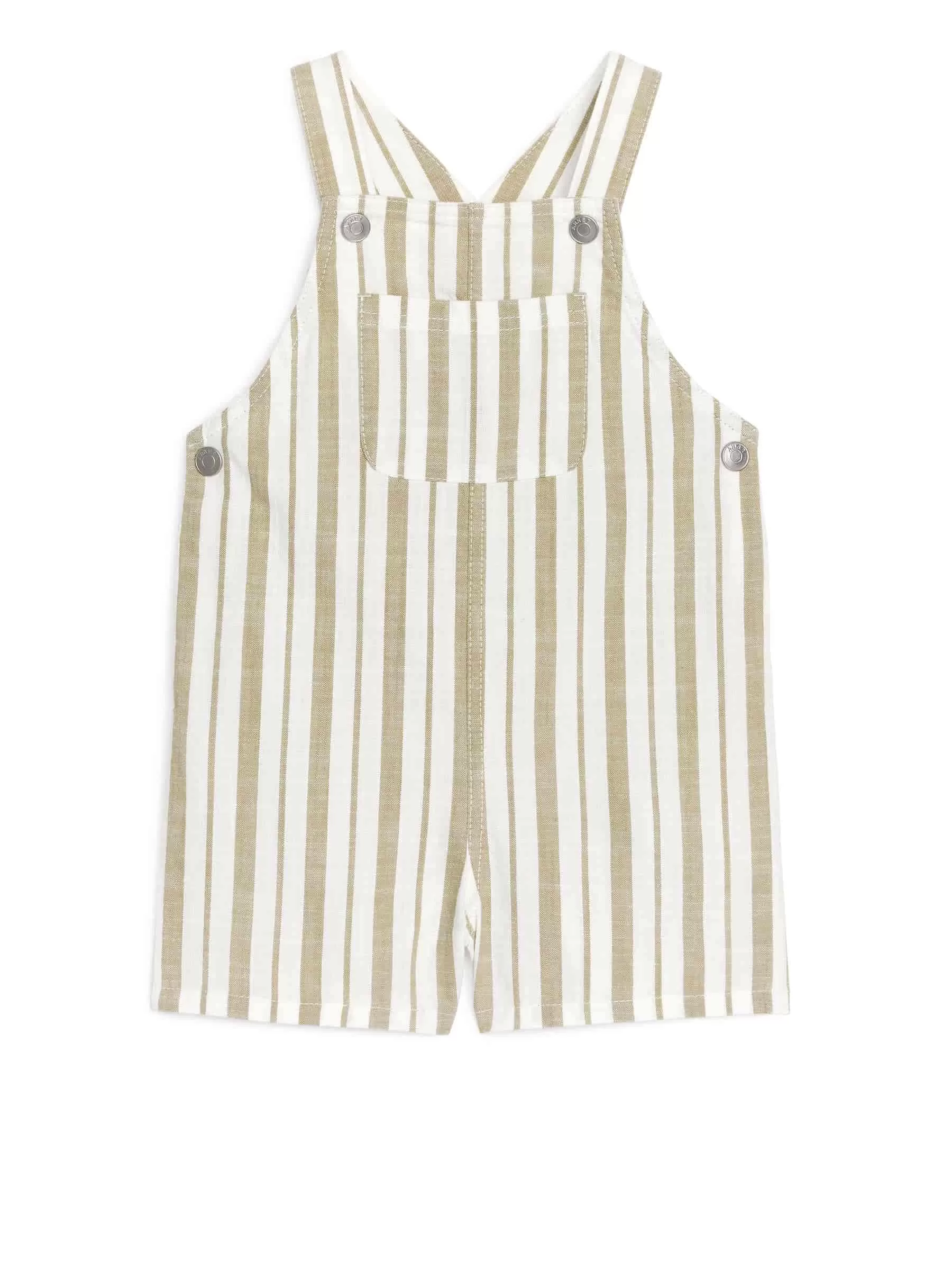 Latzshorts aus Baumwollgewebe. Detailliert mit einer einzelnen Vordertasche und Druckknöpfen an Trägern mit verschiedenen Längenoptionen. Normale Passform.