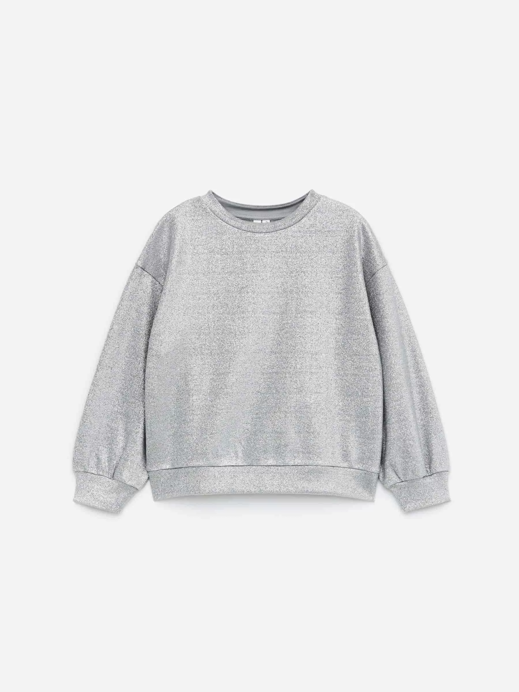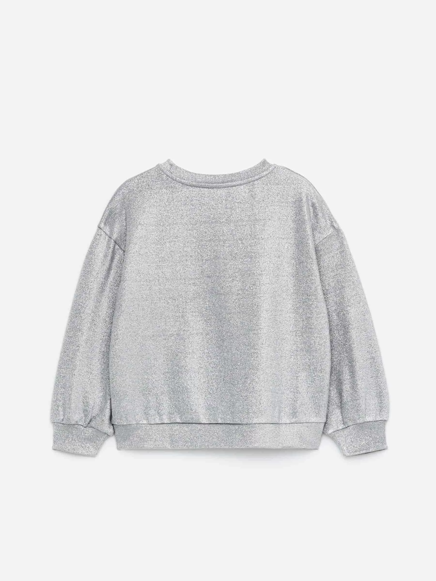 Sweatshirt aus dehnbarer Baumwolle und einem metallischen Lurexfaden, der einen wunderschönen Glitzereffekt erzeugt. Mit Rundhalsausschnitt und gerippten Abschlüssen. Entspannte Passform.