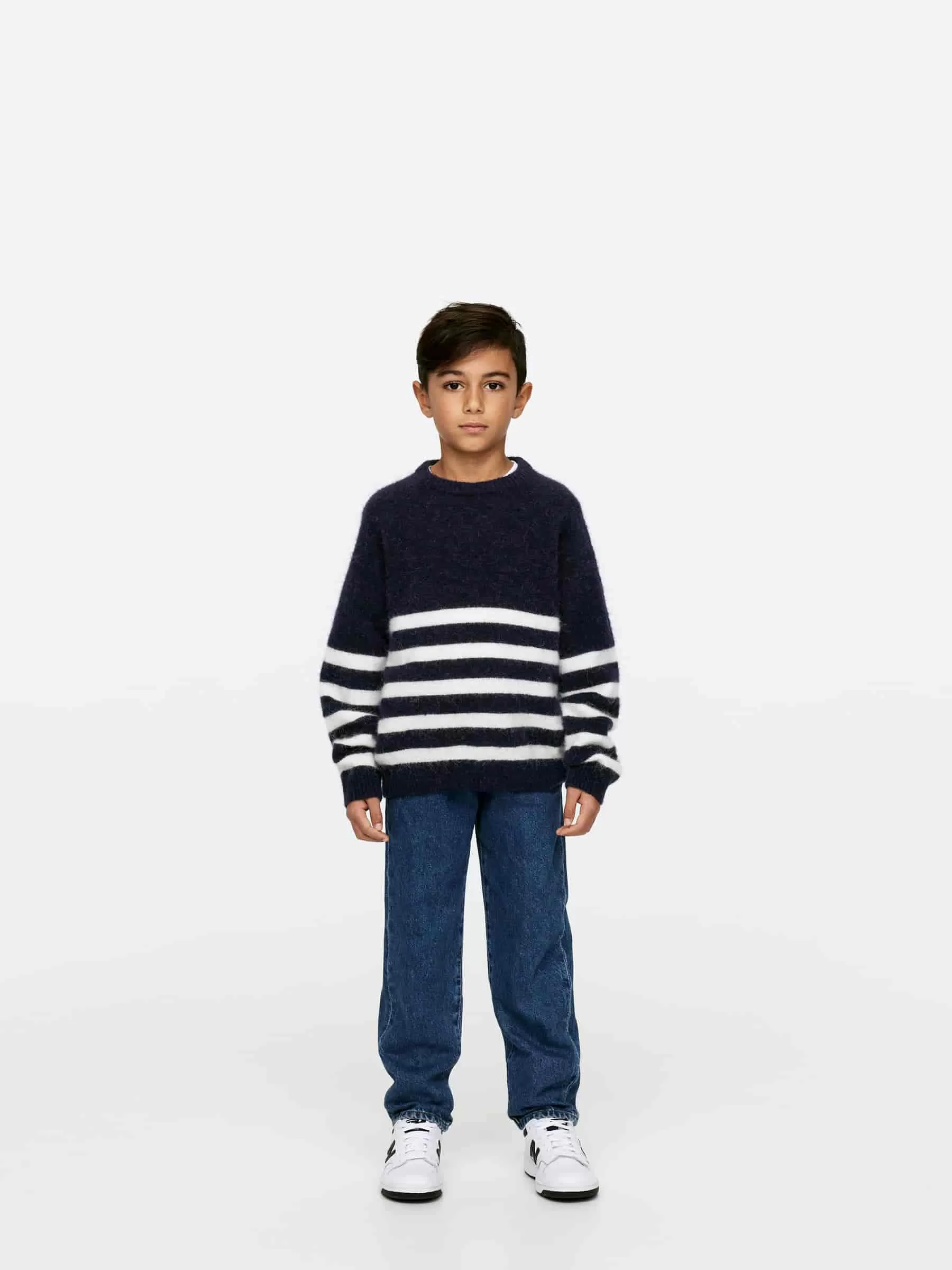 ARKE Kinder Pullover aus Alpaka-Woll-Mischung Dunkelblau/Weiß