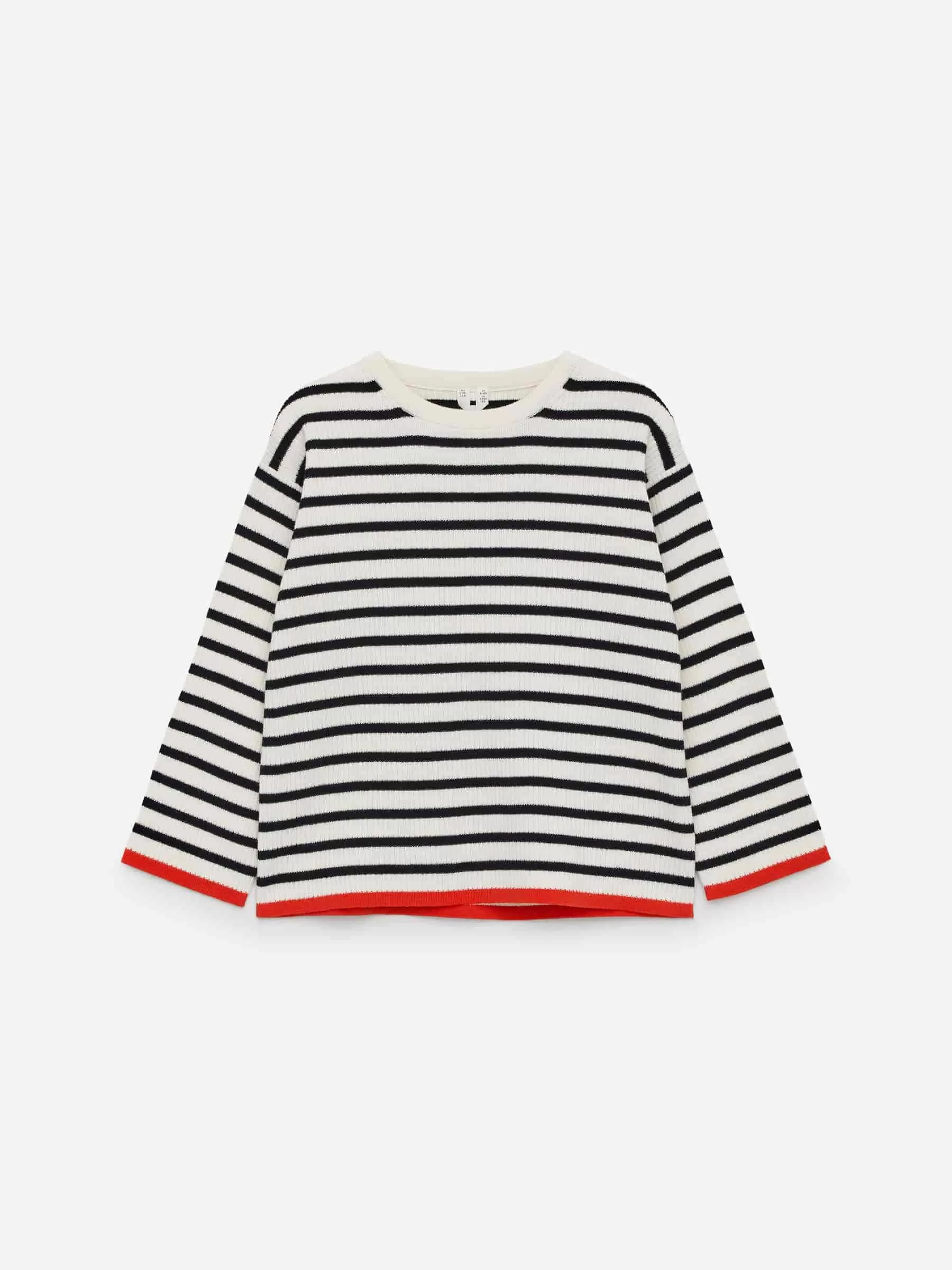 Rippstrickpullover aus Baumwolle. Ein langärmliges, leicht übergroßes Modell mit Rippstrickbündchen am Halsausschnitt.