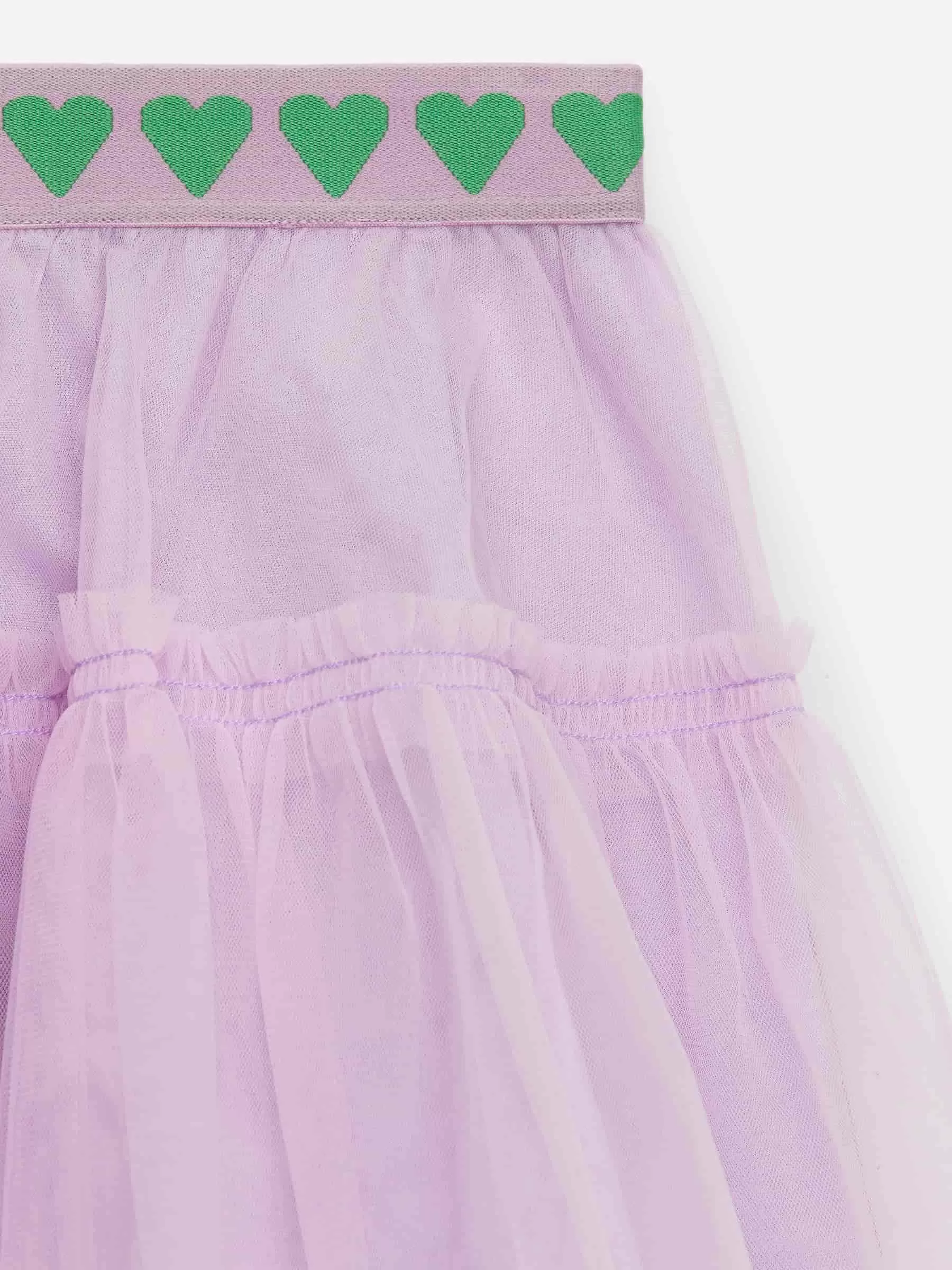 Tüllrock mit elastischem Bund. Rohe Kanten. Gefüttert.