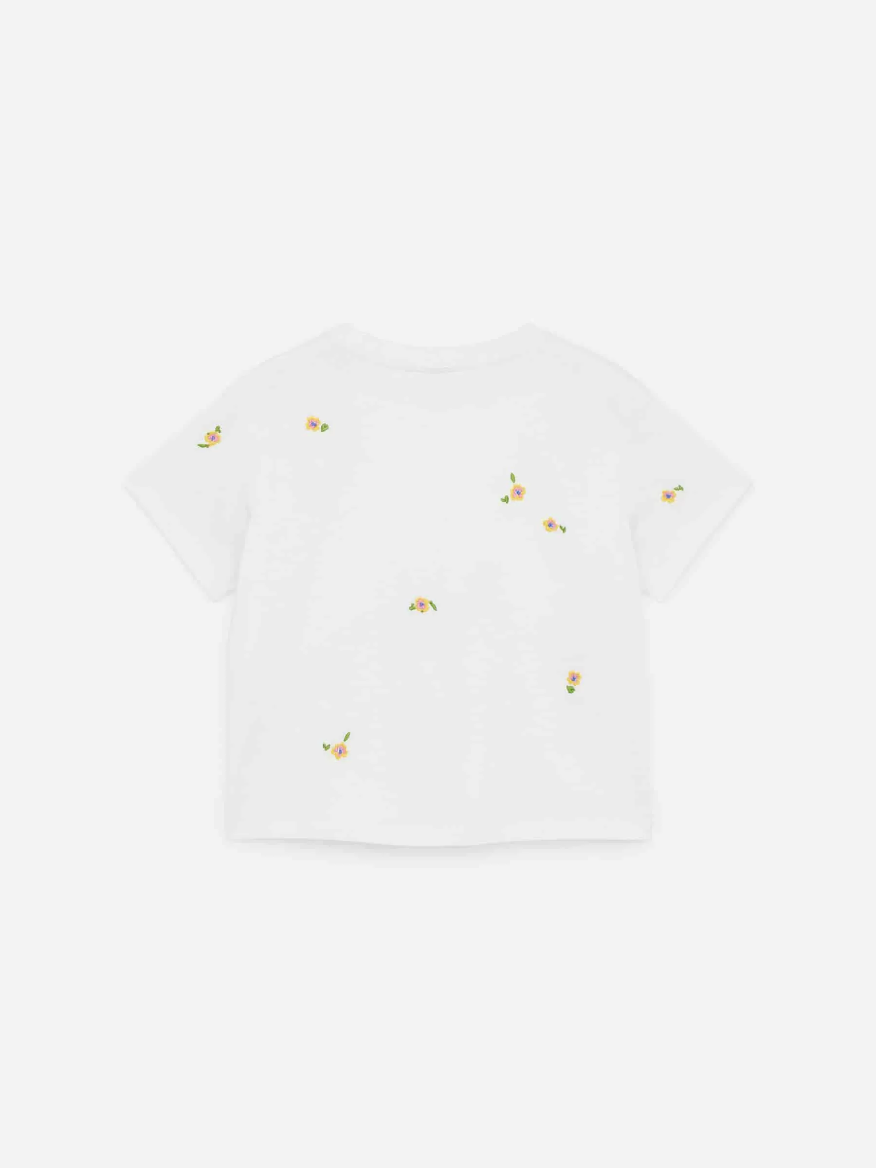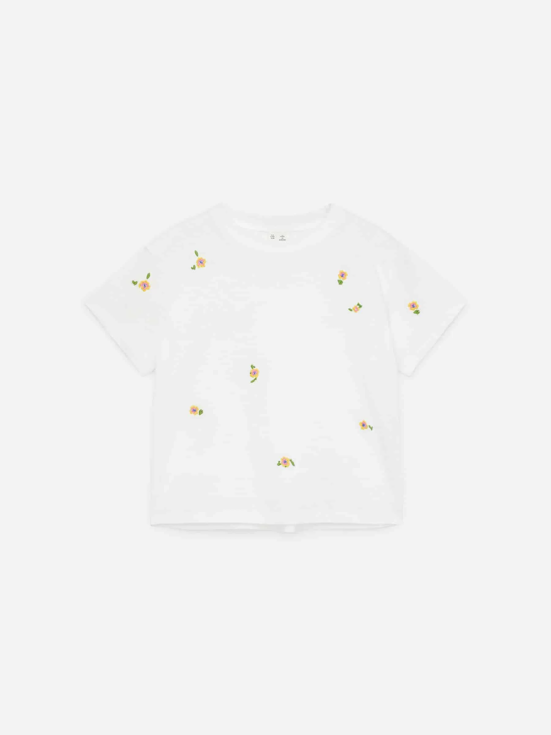 Glatter T-Shirt-Schnitt für eine weite Passform mit leicht überschnittenen Schultern. Es besteht aus Baumwolljersey und hat einen gerippten Ausschnitt.