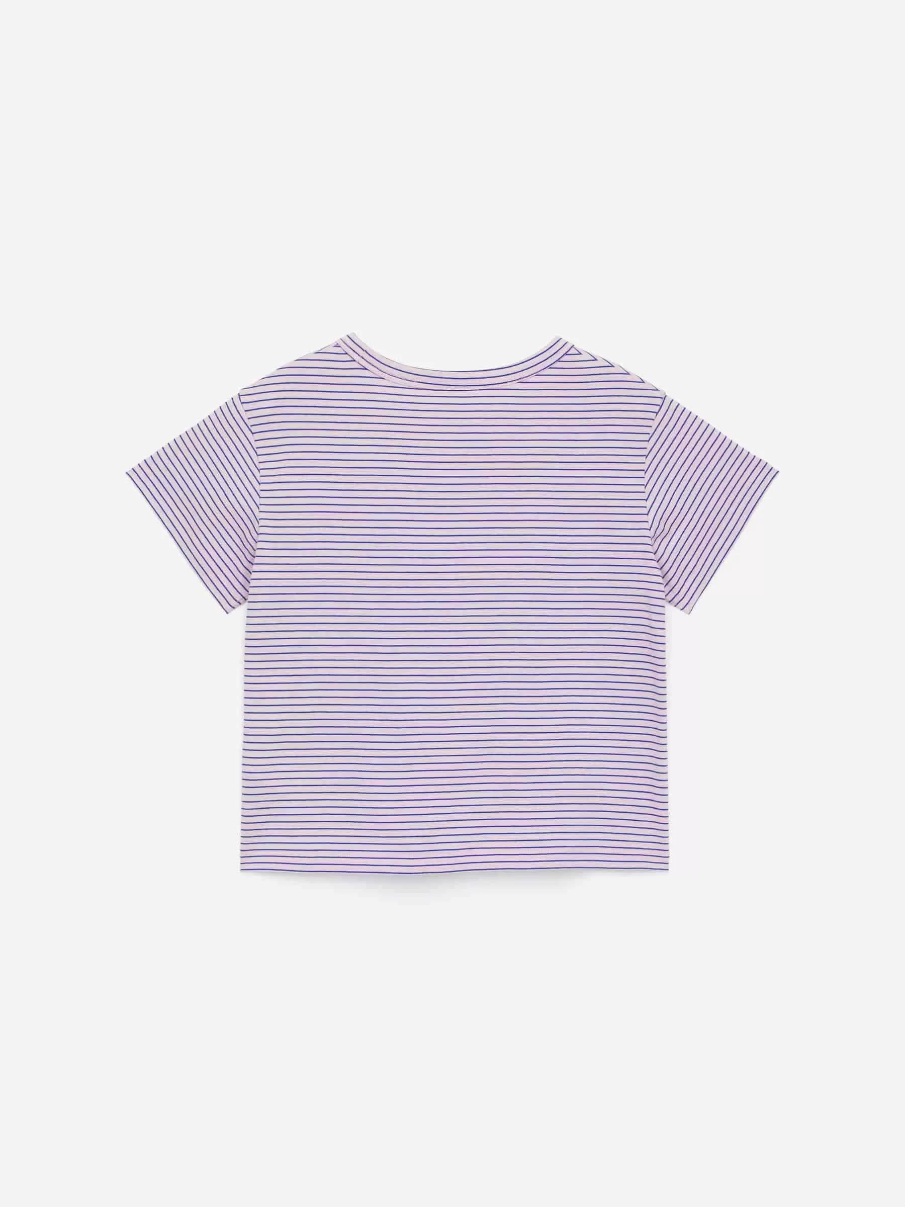 Glatter T-Shirt-Schnitt für eine weite Passform mit leicht überschnittenen Schultern. Es besteht aus Baumwolljersey und hat einen gerippten Ausschnitt.
